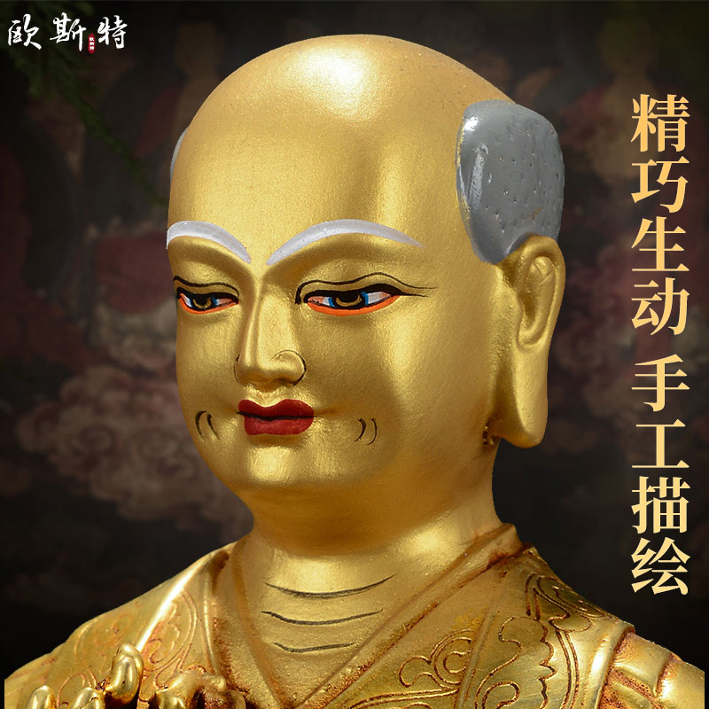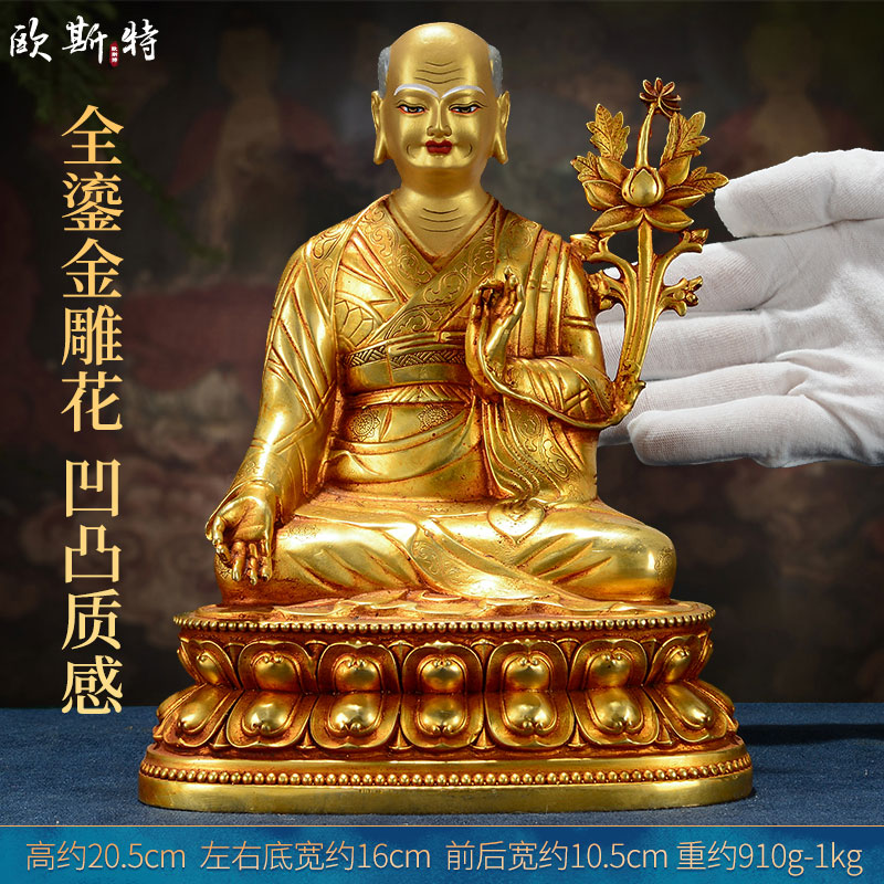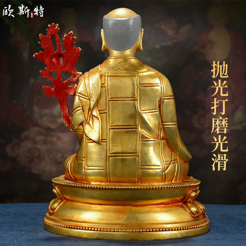 欧斯特萨迦五祖铜像摆件 西藏全铜鎏金家居客厅八思巴7寸5尊一套