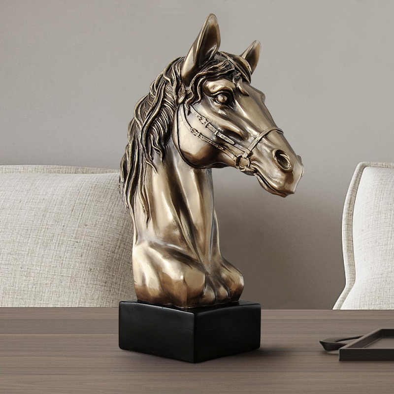 创意马头摆件仿铜树脂装饰品冷铸铜工艺品欧式复古风别.墅酒店软