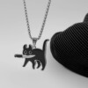 WHYBLUE 叼小刀猫咪项链钛钢不掉色小众简约创意黑猫可爱吊坠学生
