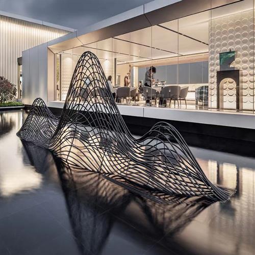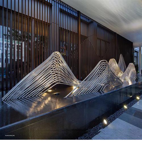 户外不锈钢镂空假山雕塑园林草坪水景钢丝线条山落地摆件装饰定制