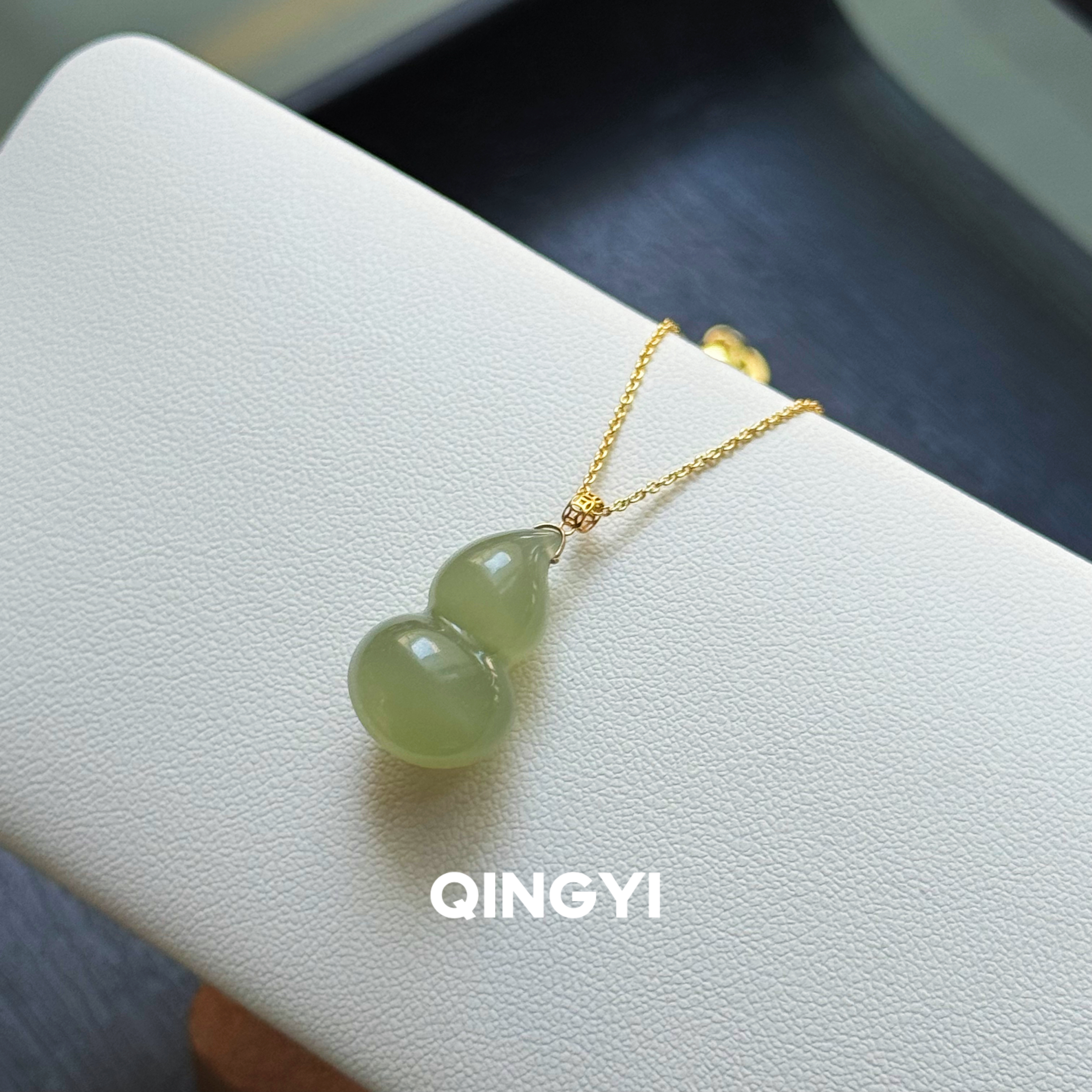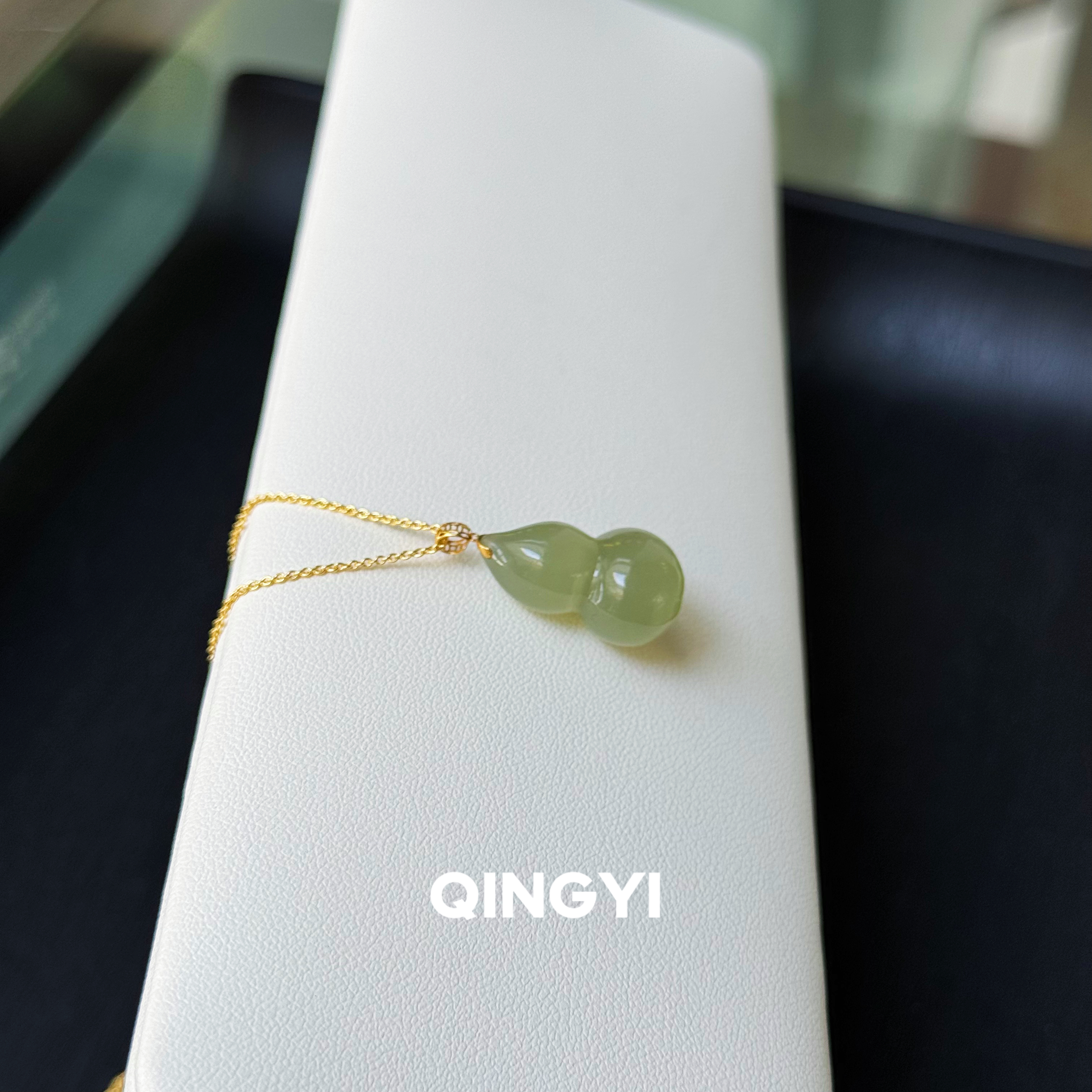 天然正品青海和田玉冰晴水葫芦吊坠18K金镶女款玉石挂件玉坠送礼