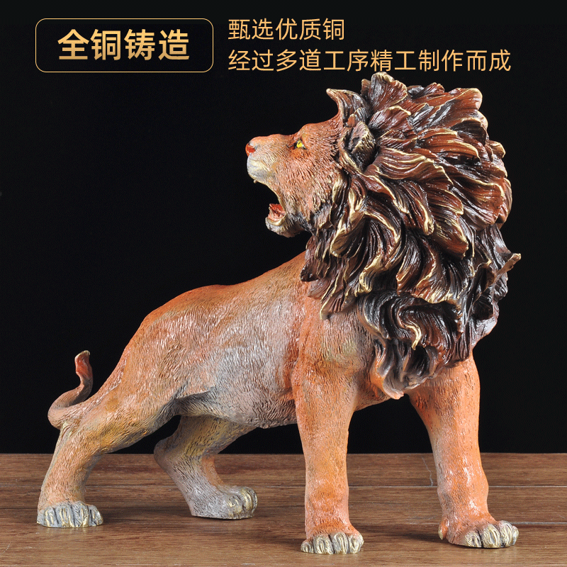 彩铜狮子摆件家居客厅玄关装饰工艺品公司办公室摆设乔迁商务礼品