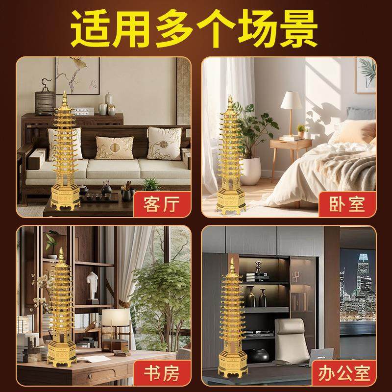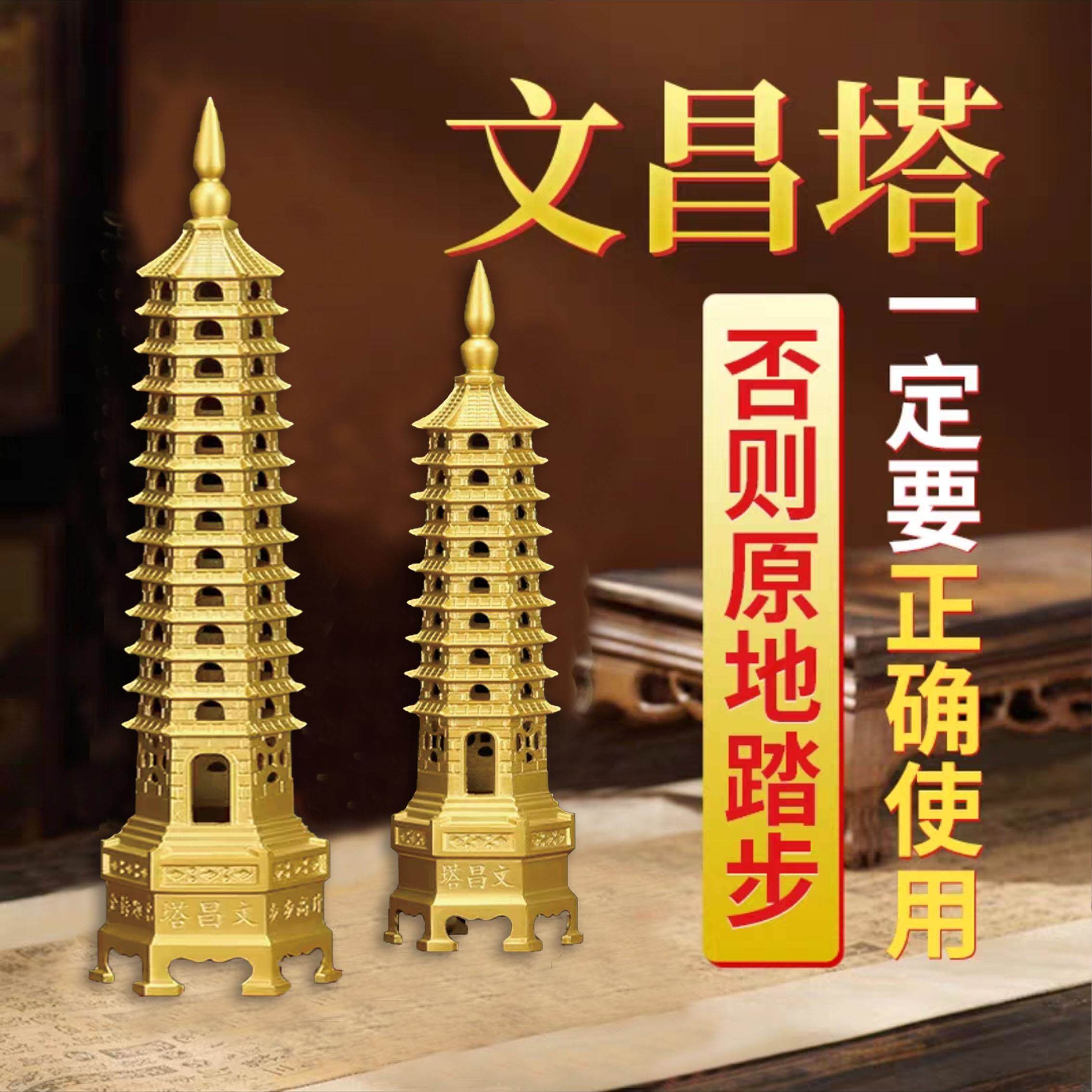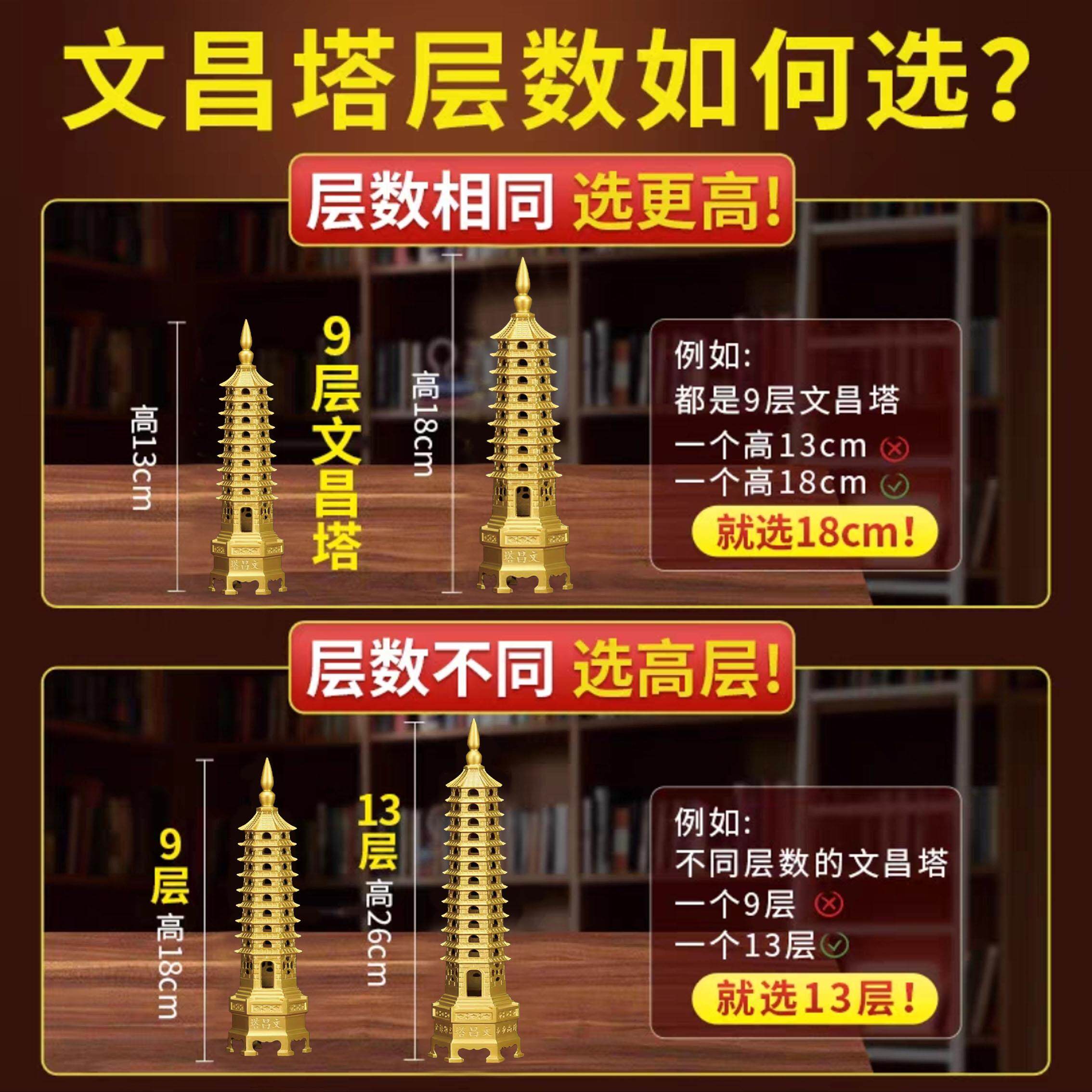 文昌塔黄铜13层十三九层公司书房书桌文昌摆件学生考试文昌毛笔架