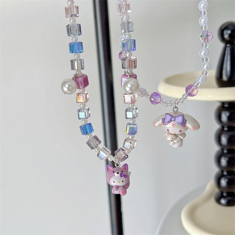 日韩夏日新款紫水晶牡蛎宝宝贝壳白珍珠项链百搭串珠闺蜜女款