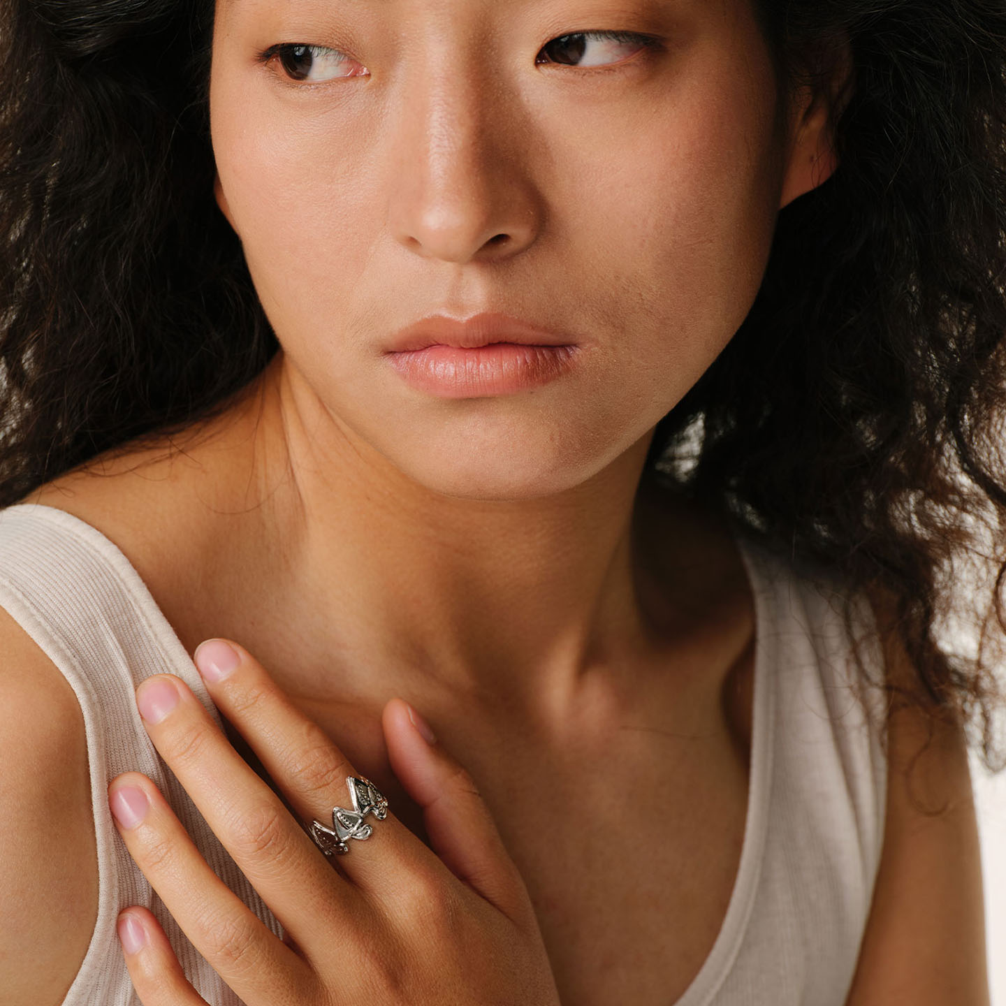 TowerOneSelect官方店GLYPHS呼呼菌蘑菇开口可调节铜镀铑食指戒指