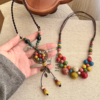 波西米亚彩色陶瓷串珠项链女复古民族风长款挂绳吊坠小众设计配饰