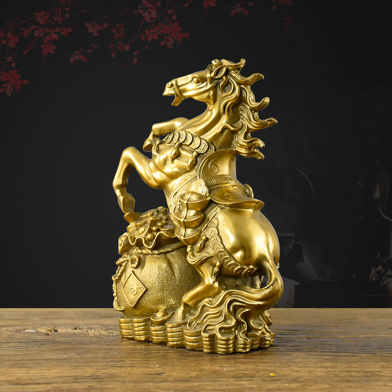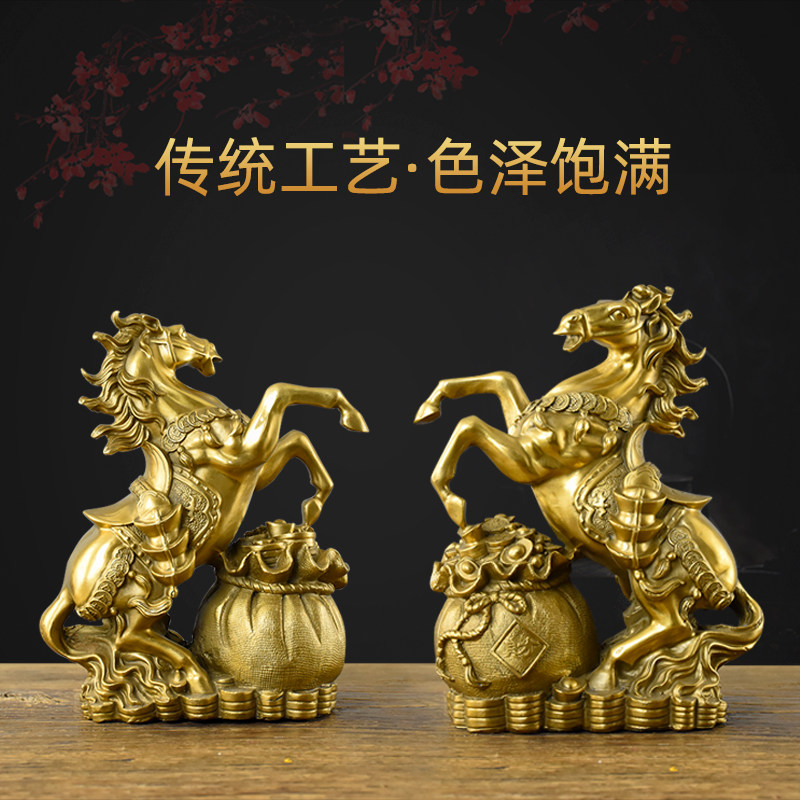 纯铜生肖铜马摆件立马发财马到成功聚宝盆办公桌客厅风水招财摆设