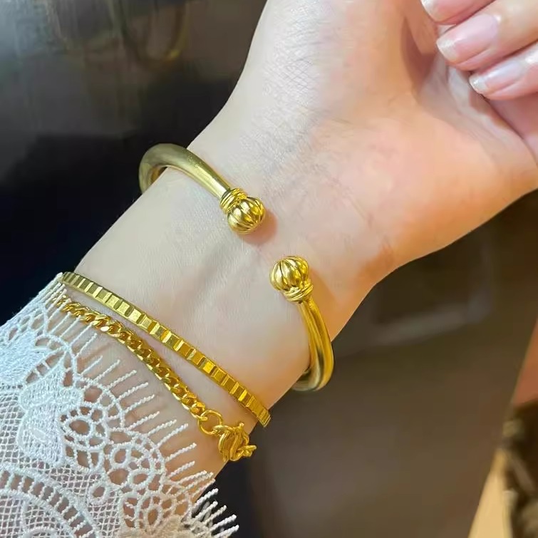 古法传承金包银猫爪南瓜手开活口招财纳福素圈镯子手环生日送礼物