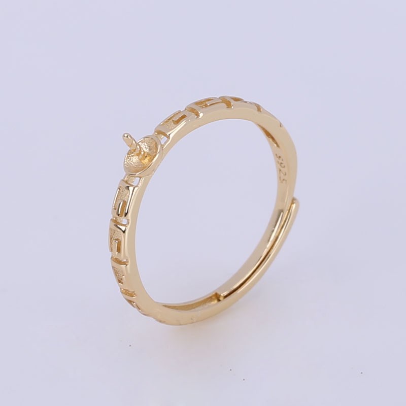 DIY珍珠配件S925o纯银简约式镂空复古戒指托指环调节戒托空托饰品
