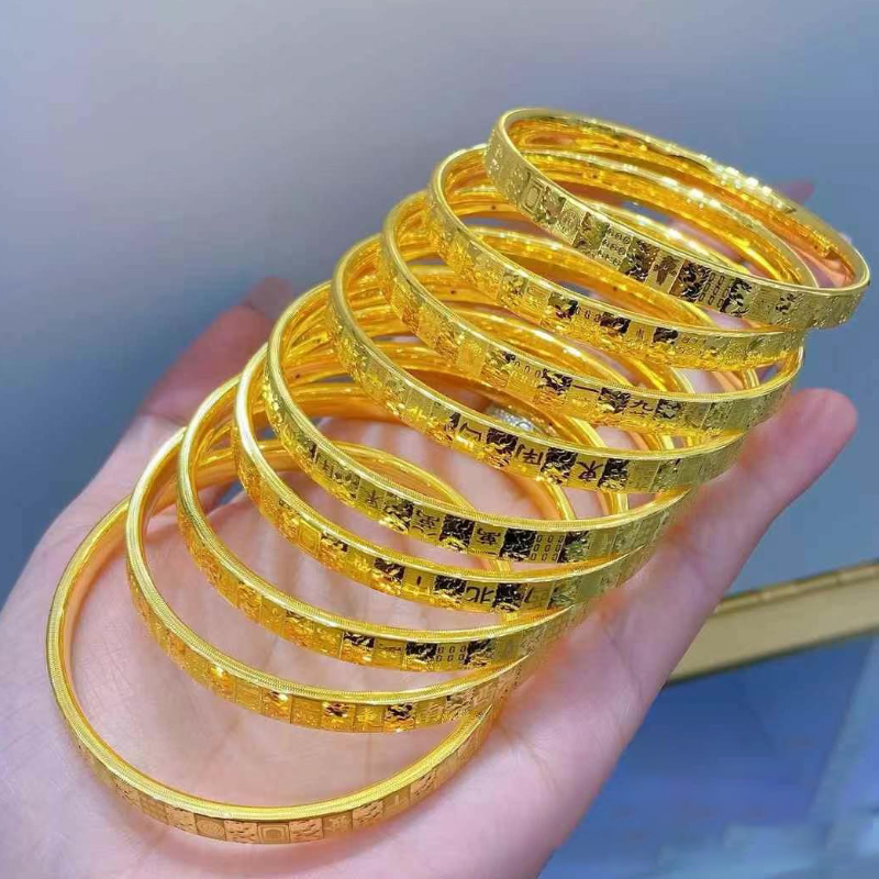 5D硬金黄金麻将碎碎冰手镯女999足金十三幺纯金车花手环送礼