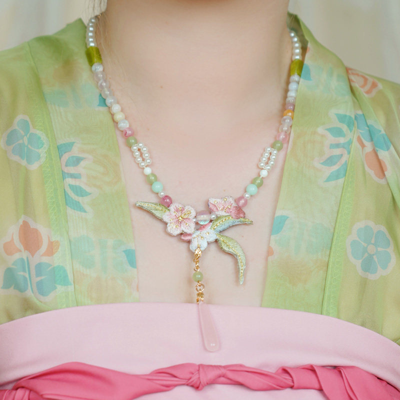 云深雾浅 落花樱 原创樱花玛瑙混合汉服短璎珞古风旗袍项链配饰