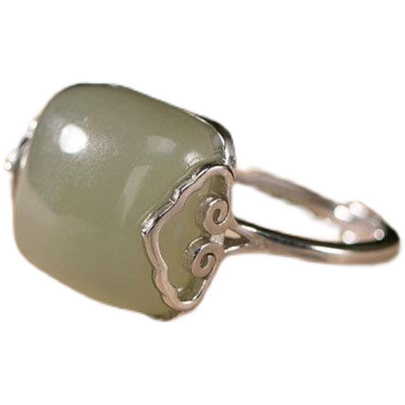 中国复古风S925银祥云精致戒指环大G气质开口可调节和田玉百搭女