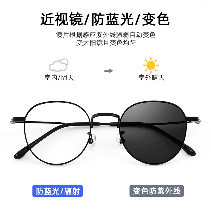 超轻纯钛小框网上配眼镜女银色圆框小脸专用眼镜框男可配近视镜片