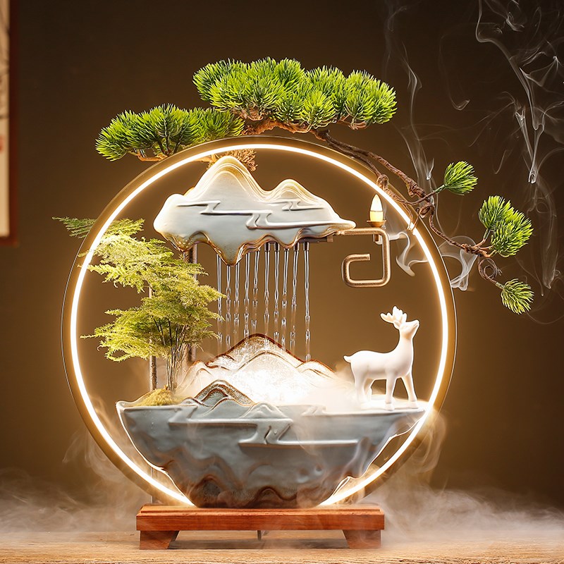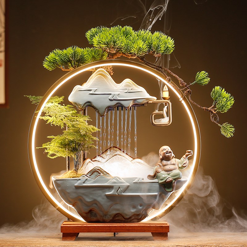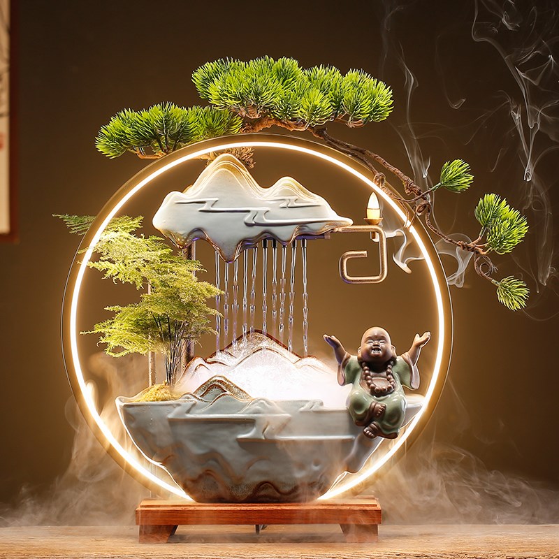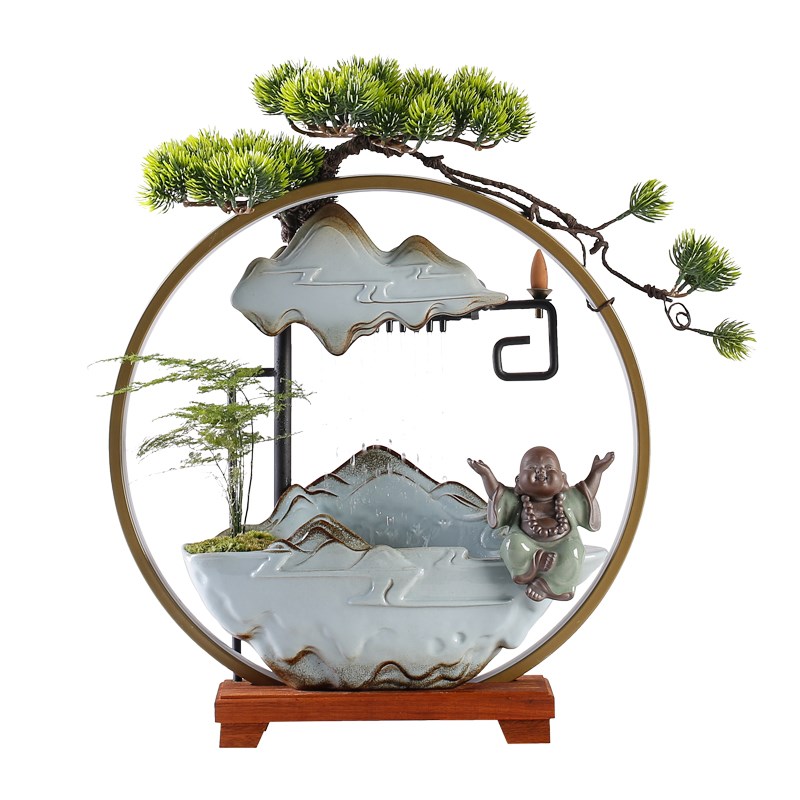 中式循环流水招财生财创意v客厅办公室桌面小摆件茶几开业送礼礼