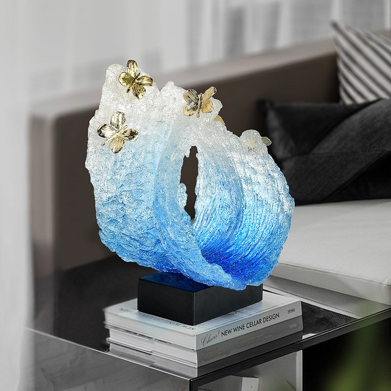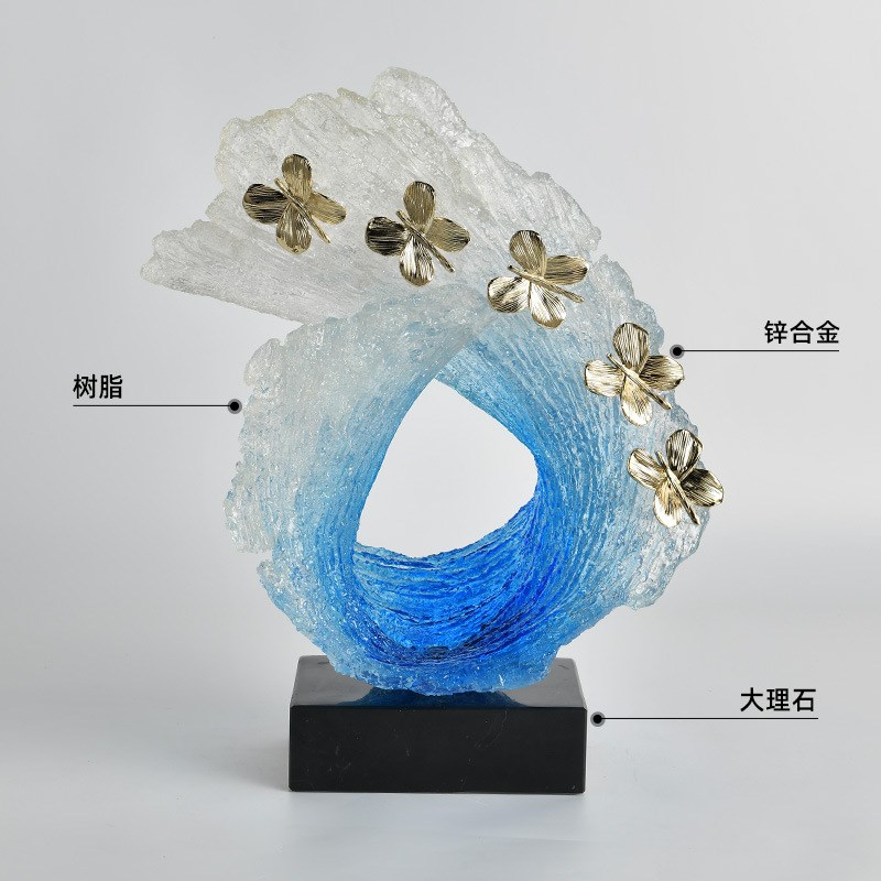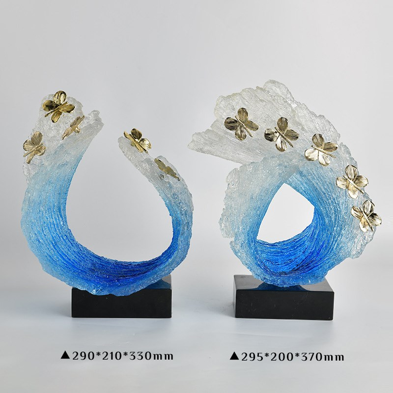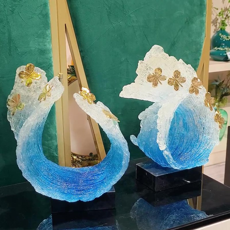 透明树脂海浪造型装饰工艺品样板房边几柜现P代抽象雕塑艺术摆件