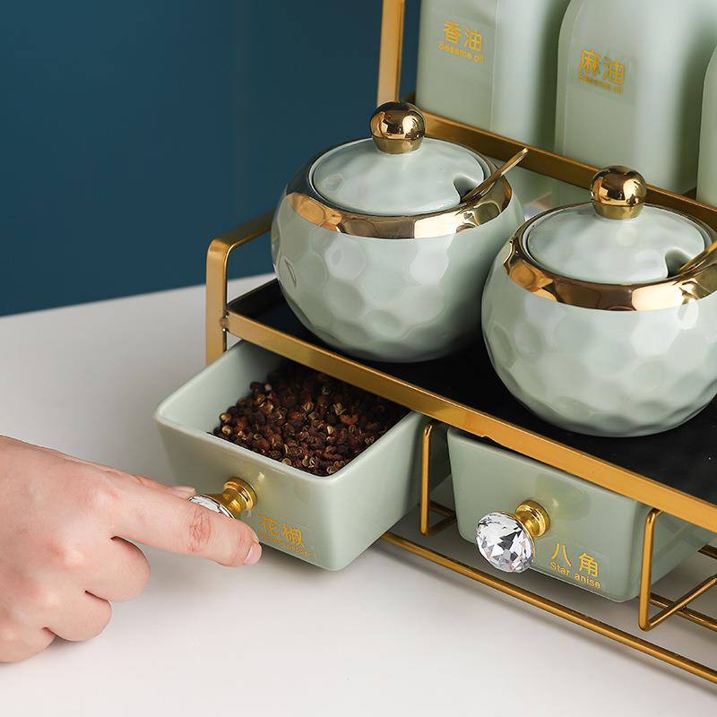 高颜值厨房调料盒玻璃调味瓶套装家用陶瓷调料罐子油盐酱醋收纳盒