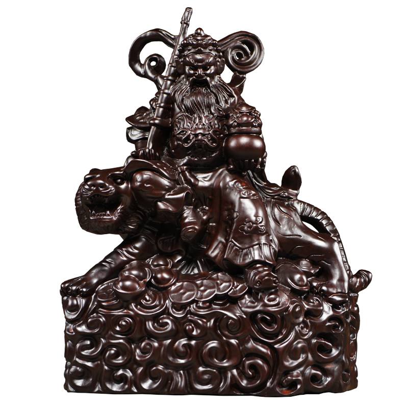 黑檀木雕刻武财神骑虎赵公明神像摆件家居公司装饰工艺品开业送礼