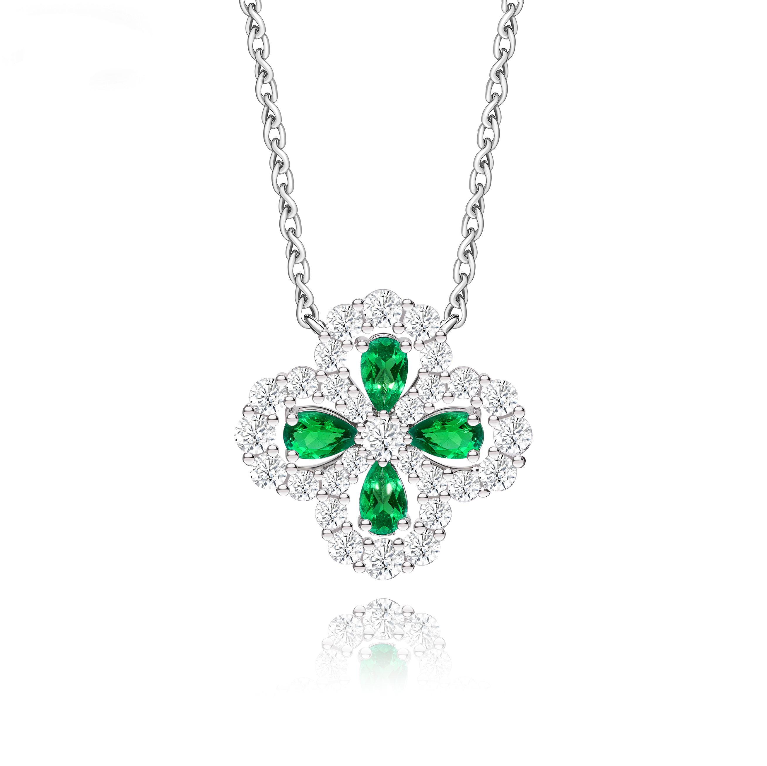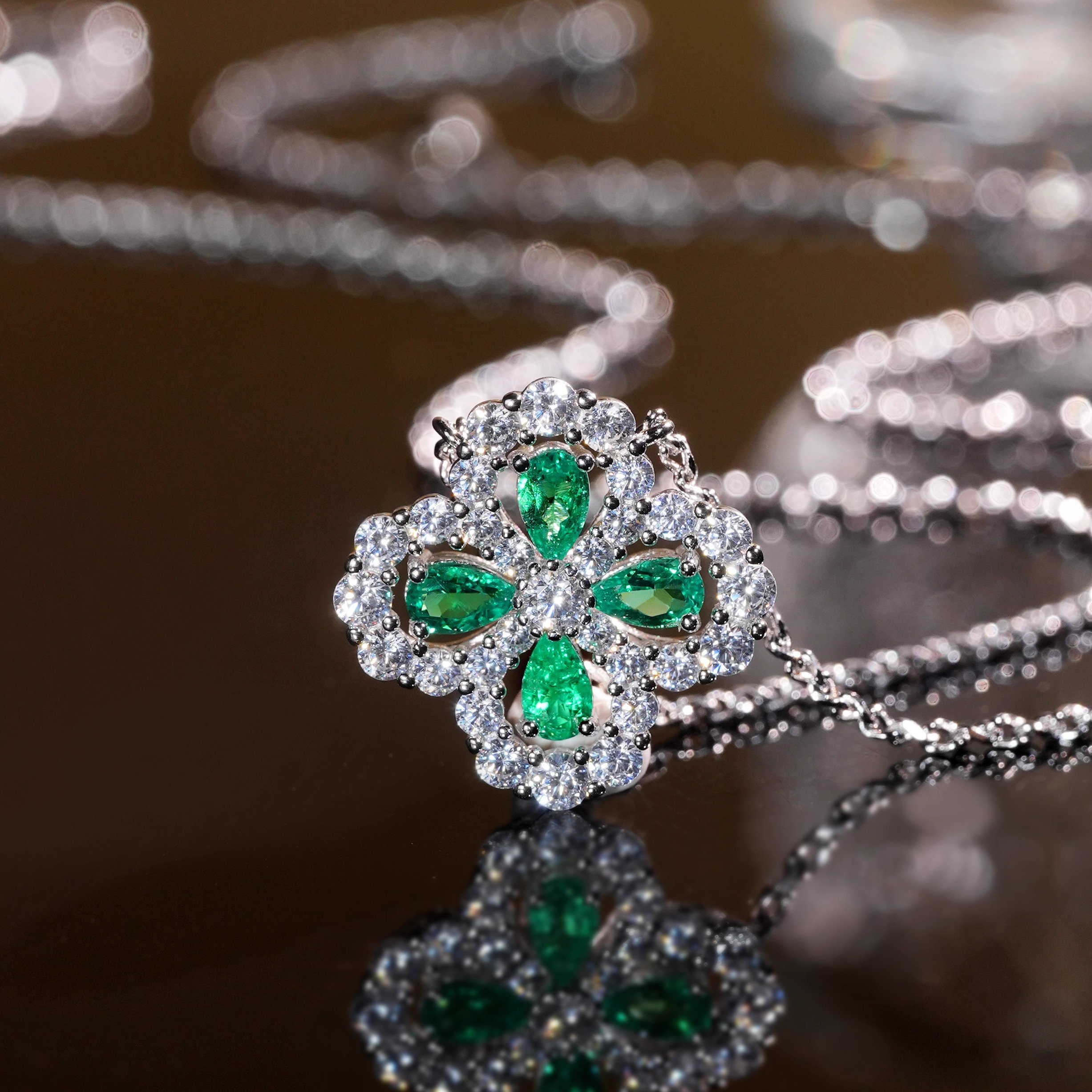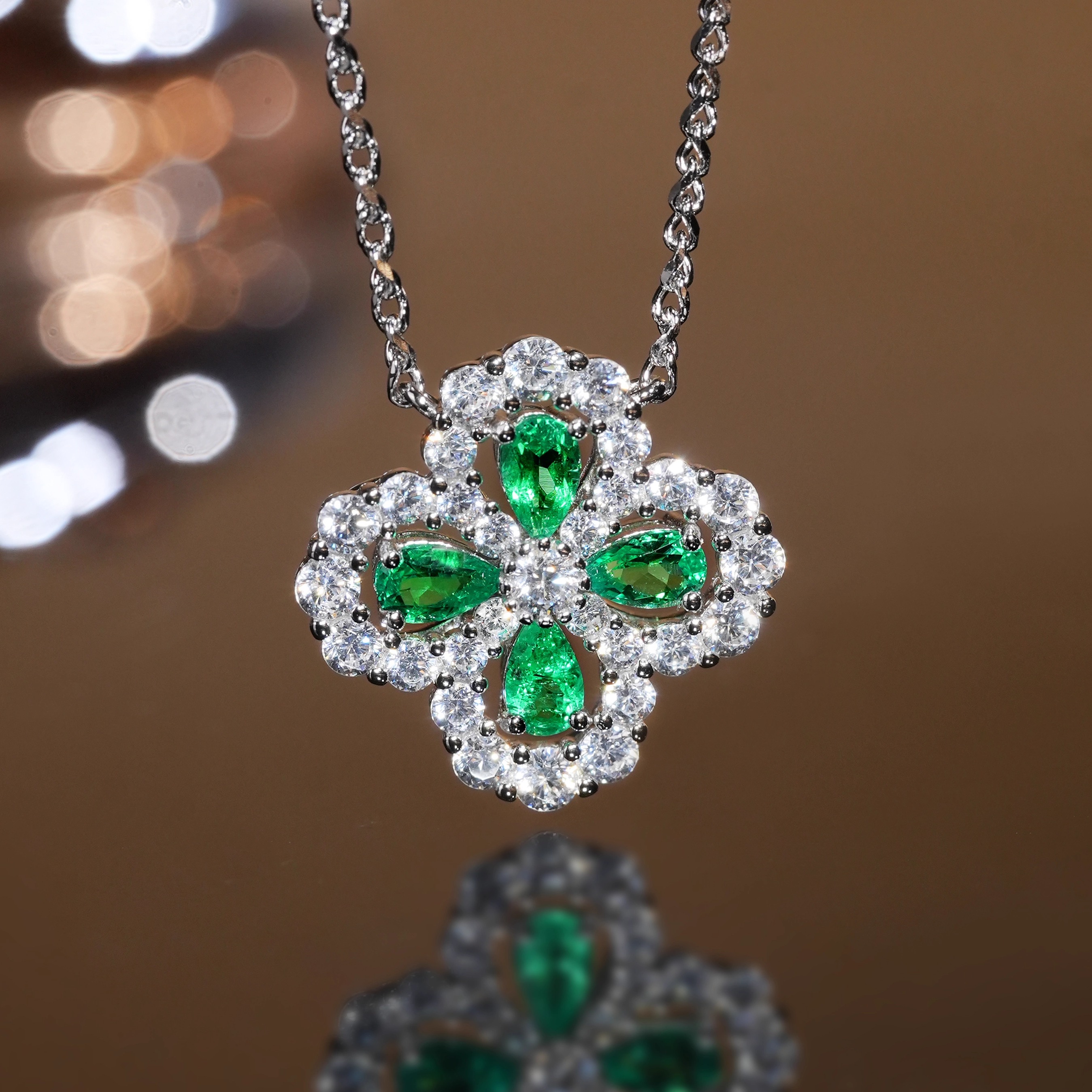 VISING实验室培育祖母绿1克拉左右四叶草小花吊坠锁骨链木佐色