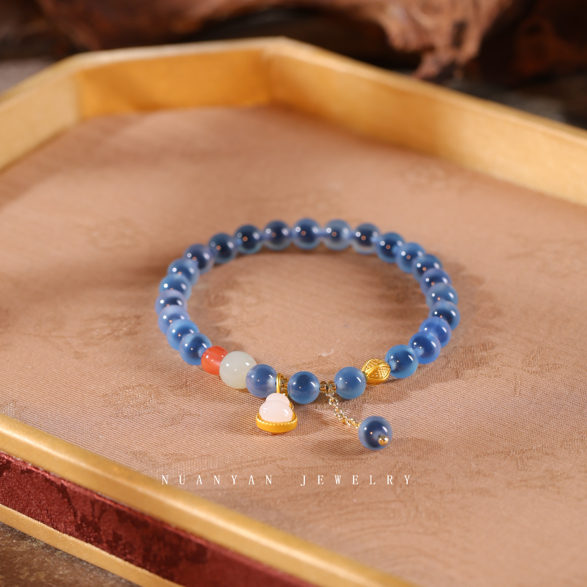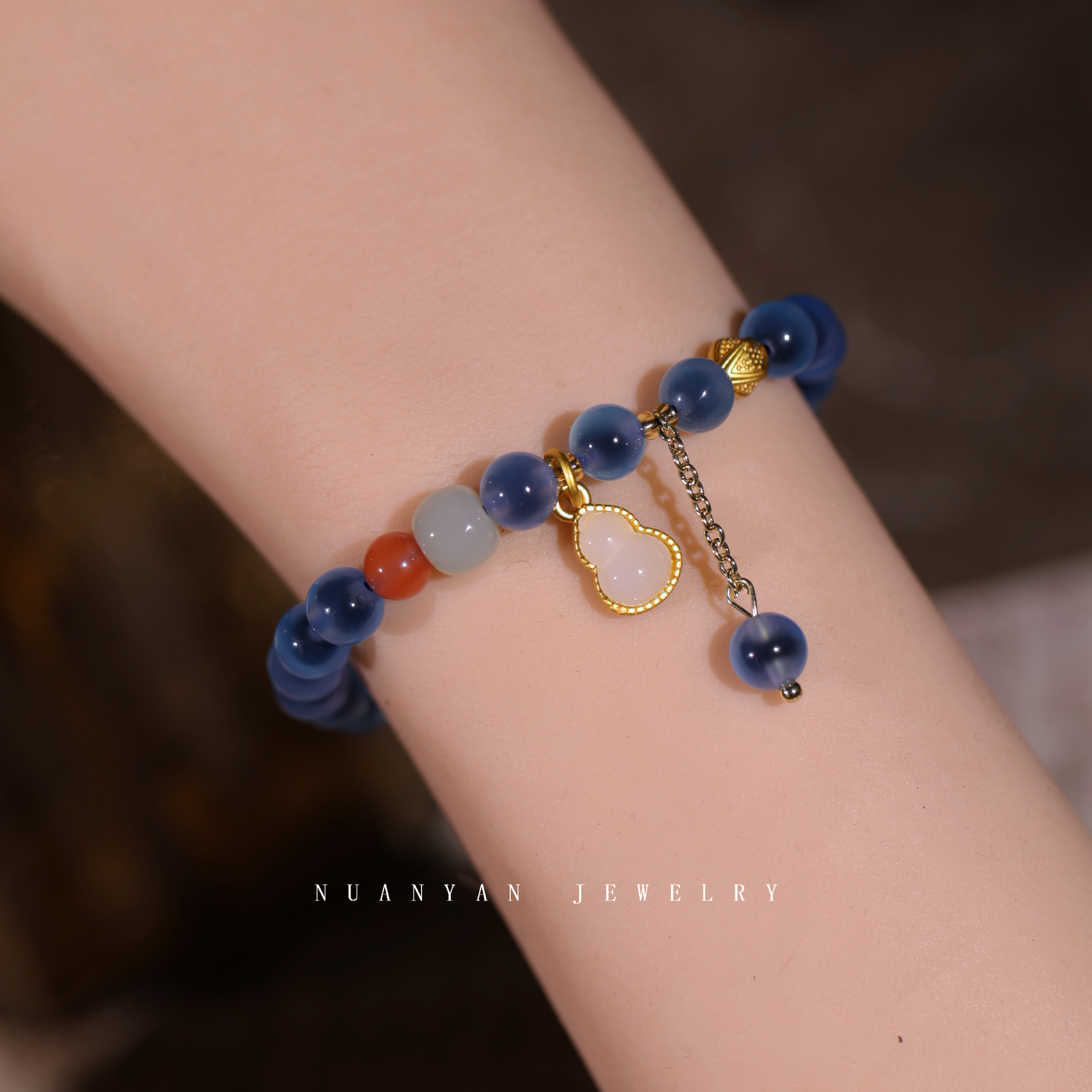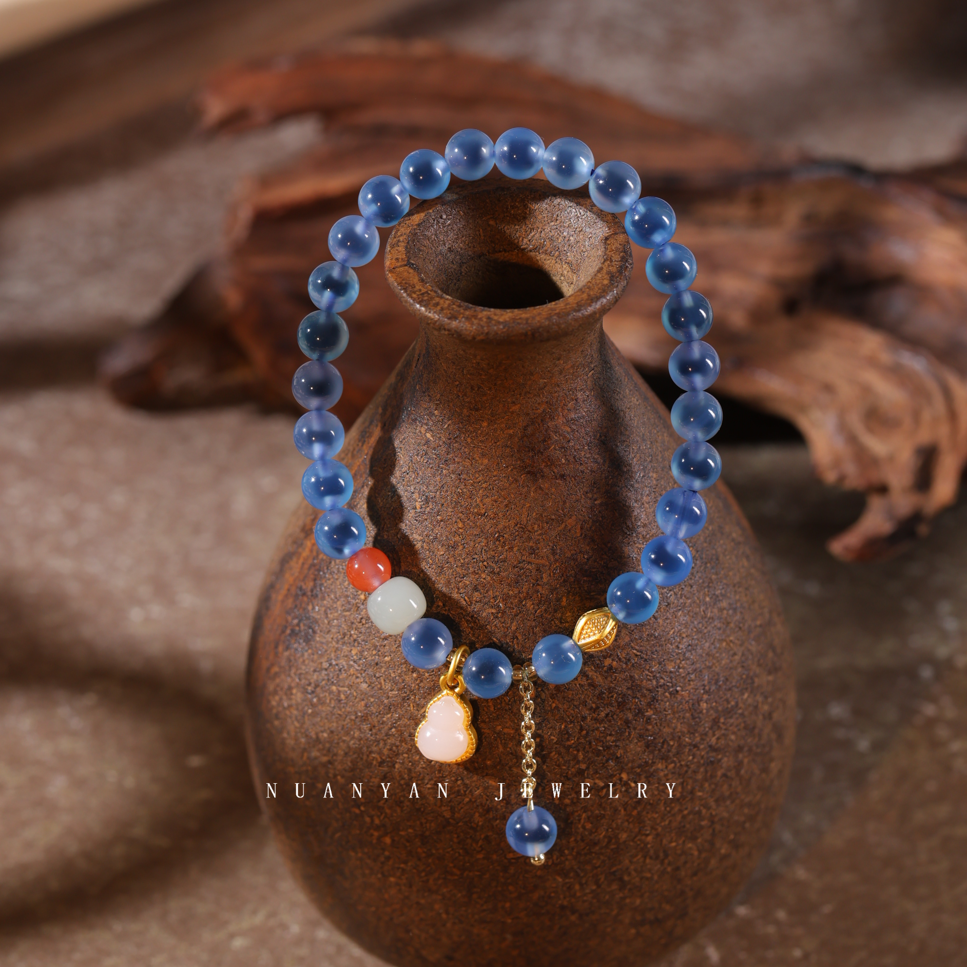 暖言天然糖心玛瑙手链女新中式原创转运葫芦吊坠蓝色玛瑙手串礼物