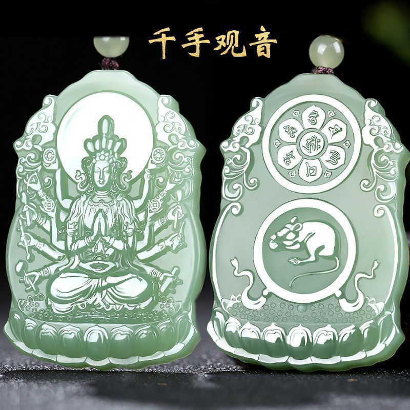 十二生肖守护神和田玉吊坠玉牌本命佛挂坠湖水绿男女颈饰玉佩挂件