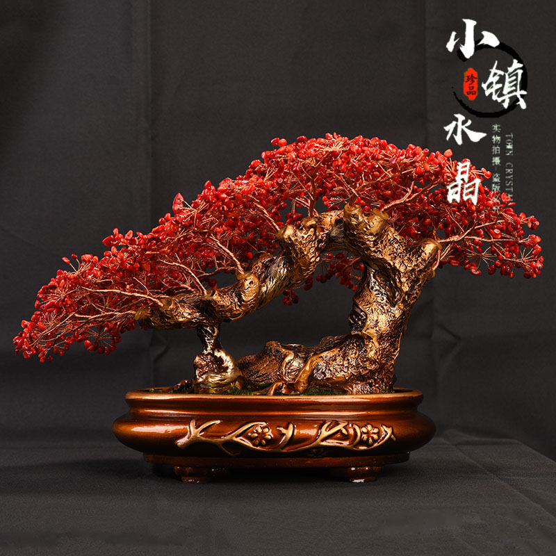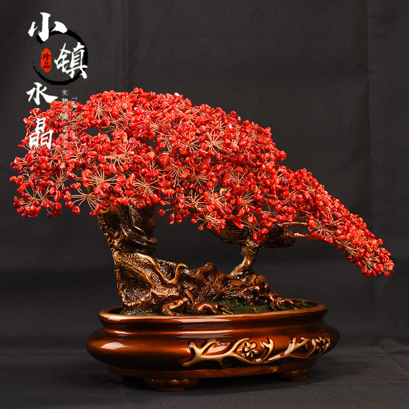 水晶红色发财树招财摇钱树客厅电视柜公司店铺开业结婚乔迁送礼