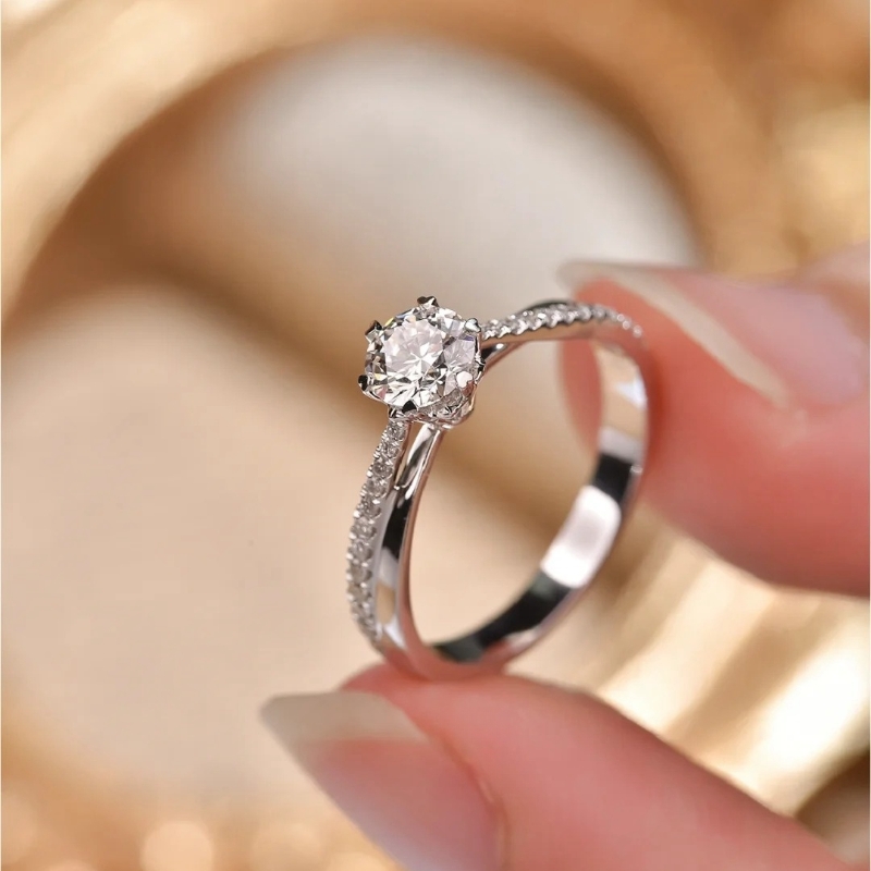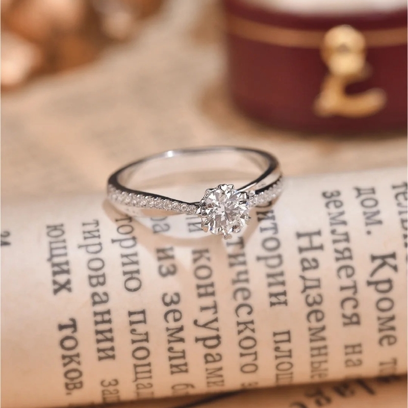 YUDANDUN莫桑戒指60分扭臂镶钻小花钻戒时尚简约轻奢结婚首饰女