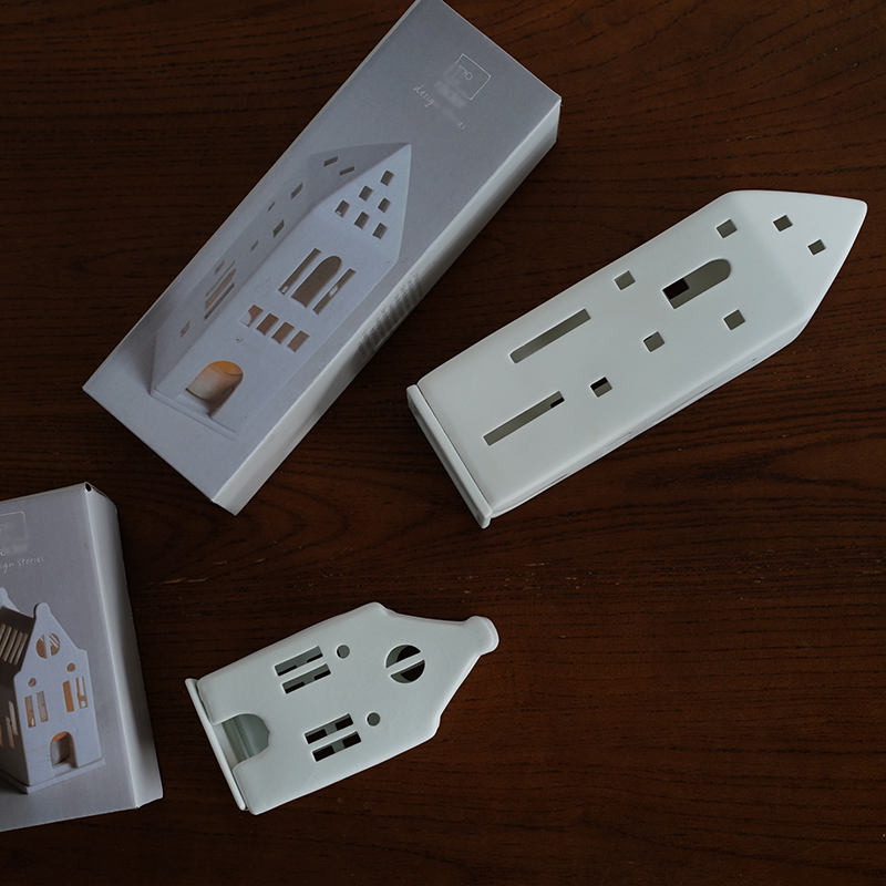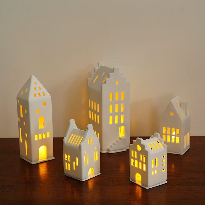 北欧原包装出口丹麦城市房子造型陶瓷烛台手工梦想屋家居装饰摆设