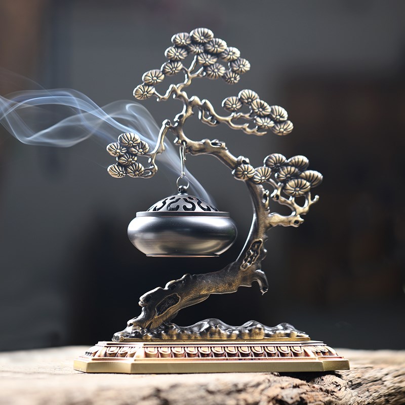 迎客松铜摆件沉盘香檀香熏香炉家用室G内倒流香薰炉茶道吊式香熏