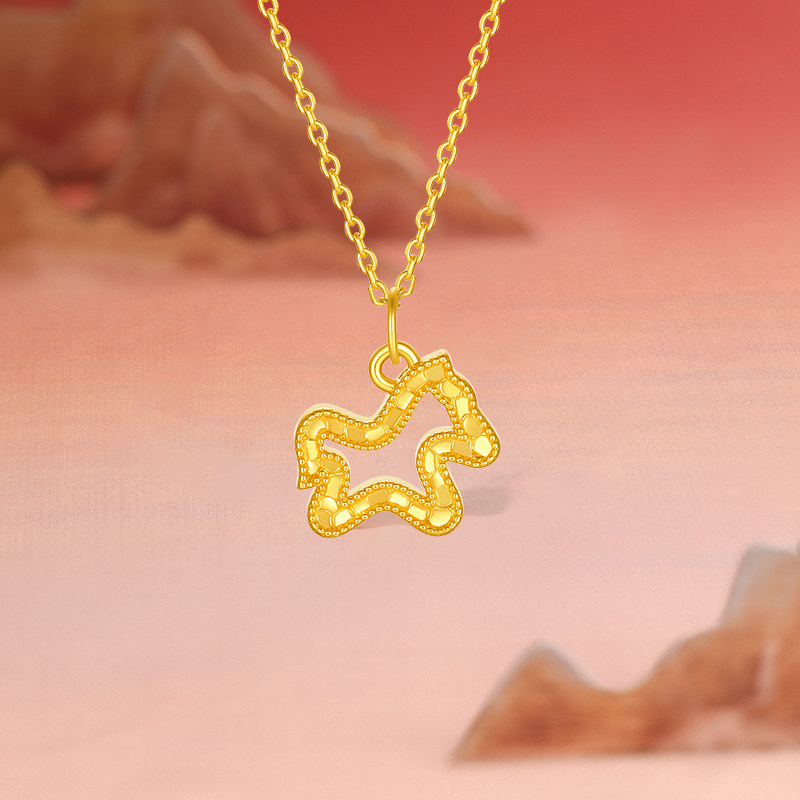 周六福黄金5d硬金吊坠女款定价黄金碎碎冰生肖马颈饰送圣诞礼物