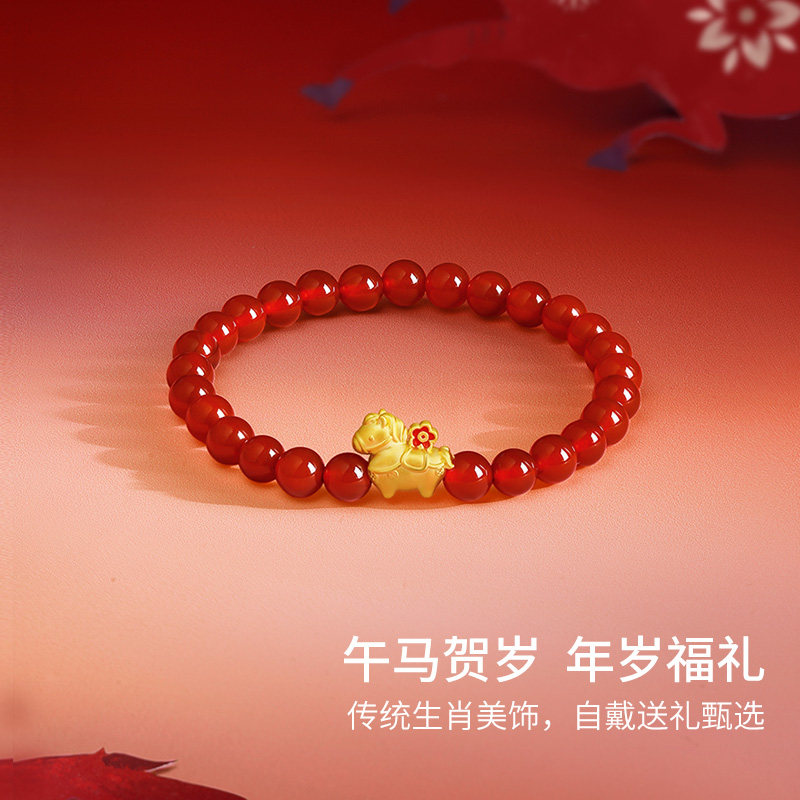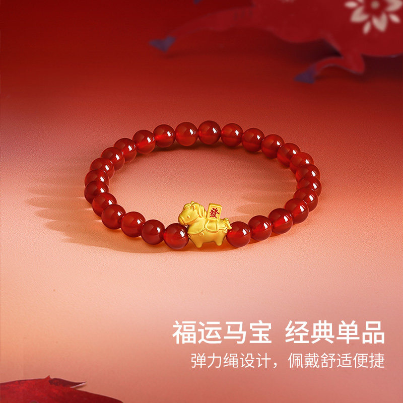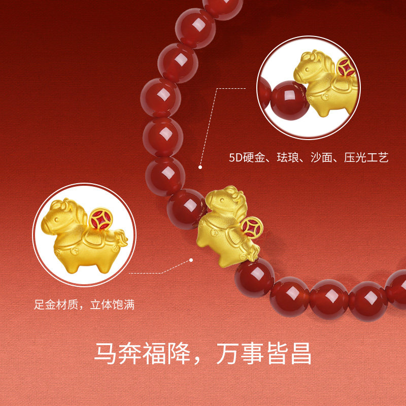 周六福黄金5d硬金手串马上发财生肖马系列定价本命年圣诞礼物女