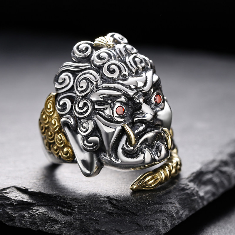 佛魔一念之间纯银戒指男士霸气潮男个性大号不动明王开口男款潮人