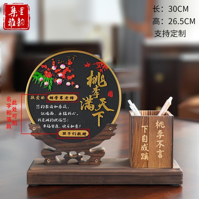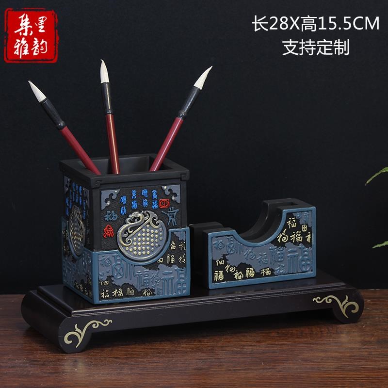 高档笔桌摆件办公室面炭雕书房送老师筒实用客户国风商务礼送品纪