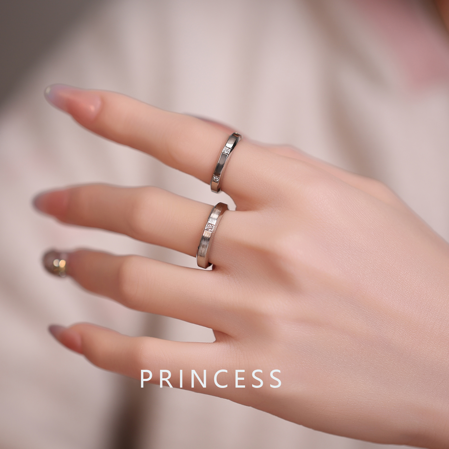 999足银培育钻戒指定制闭口莫桑石情侣戒指一对轻奢镶钻情侣对戒