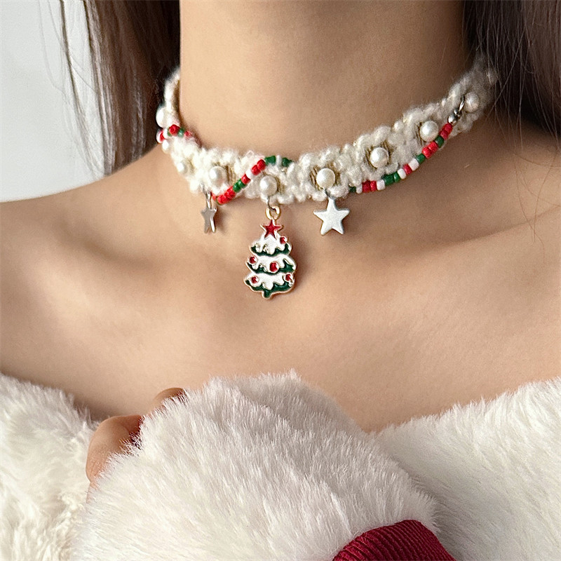 圣诞树吊坠毛绒chocker项圈女秋冬项链颈链圣诞节新年氛围感配饰
