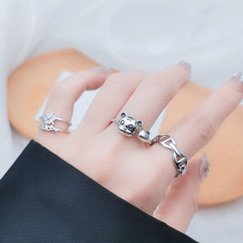 纯银戒指女s925纯银开口戒指小众仿真钻戒高级感潮食指戒气质指环