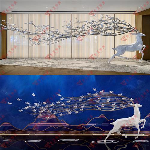 不锈钢几何切面长角尾鹿雕塑定制售楼部酒店大堂足浴会所KTV摆件