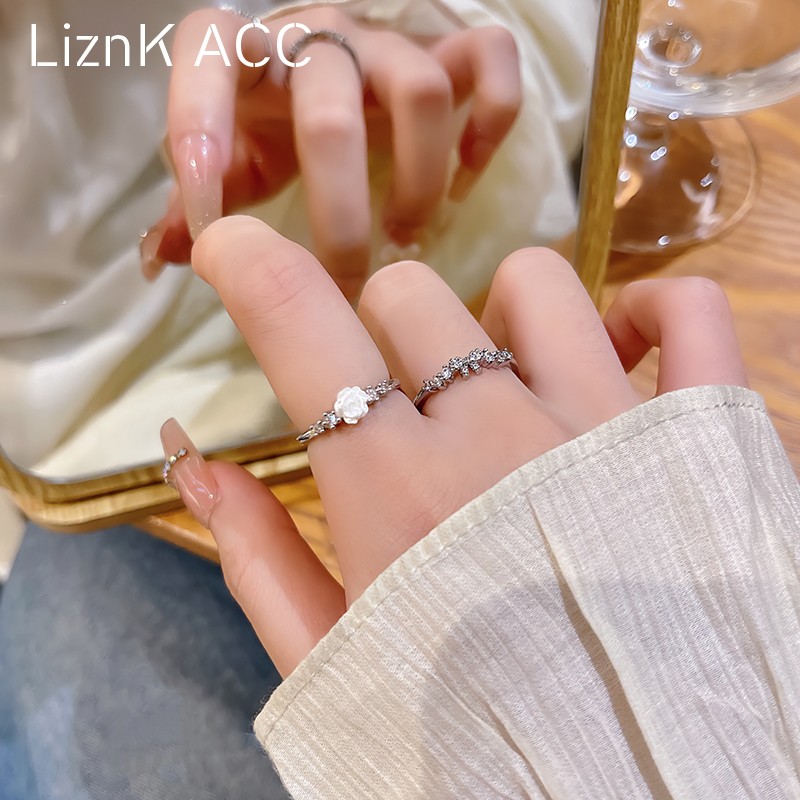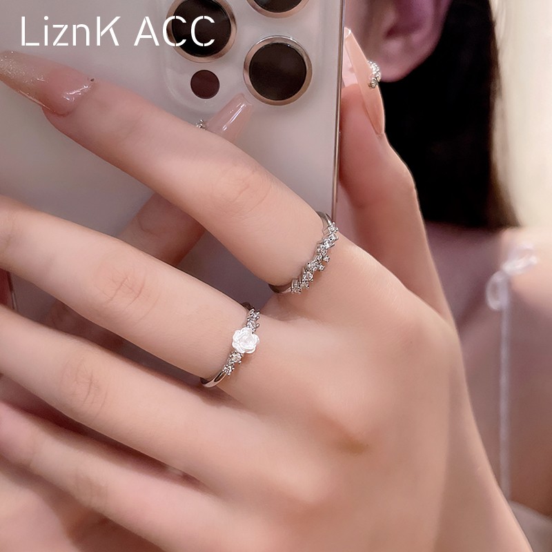 夏季甜美山茶花蝴蝶结戒指女小众设计感轻奢冷淡风气质食指戒指环