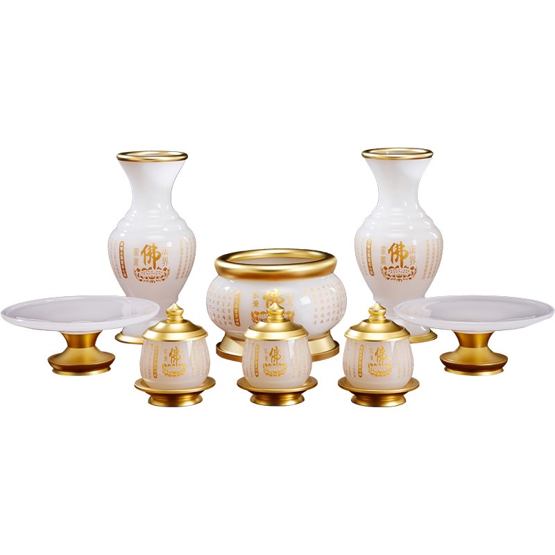 琉璃玉佛c前供具套装供佛香炉水杯花瓶供果盘家用供奉佛具用品大