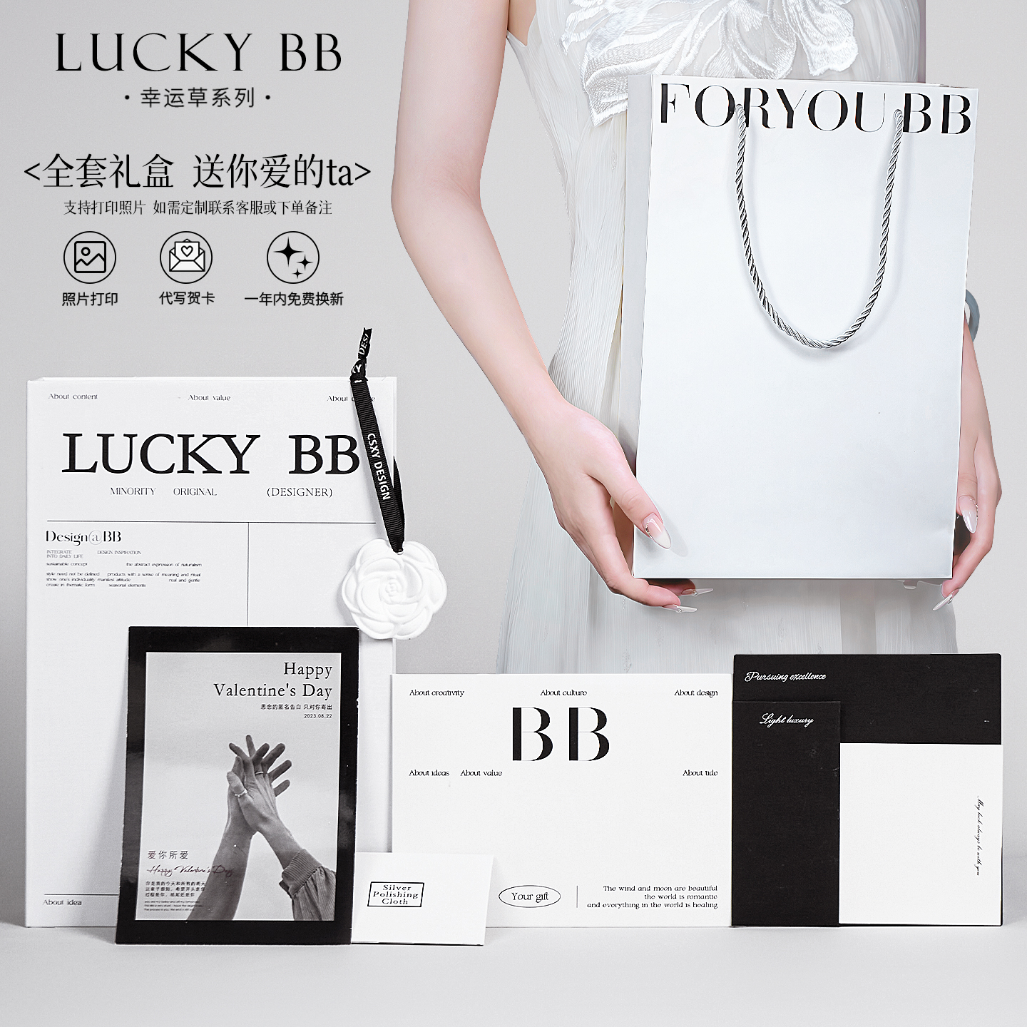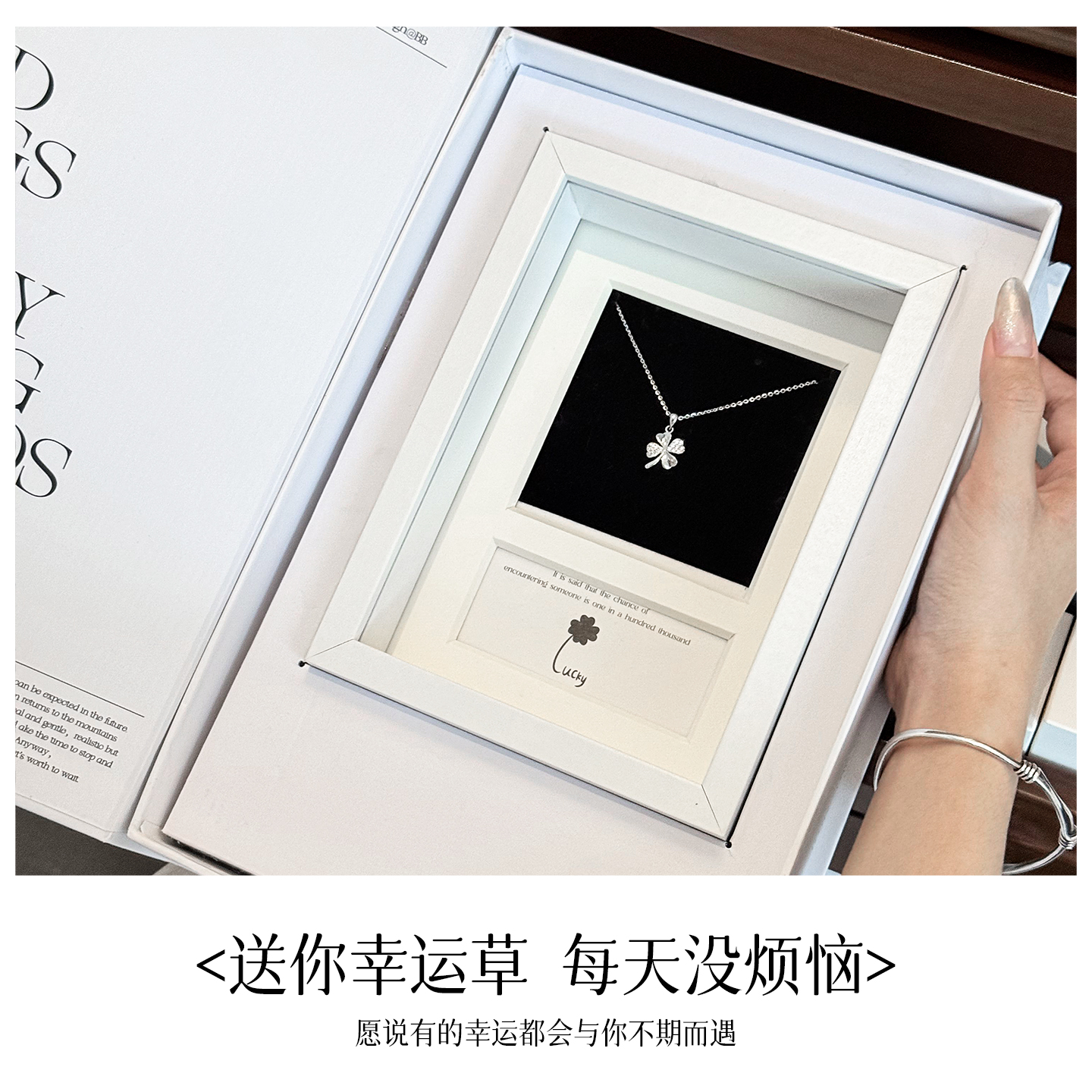 幸运四叶草纯银项链七夕节送女友生日礼物送闺蜜朋友实用礼盒装