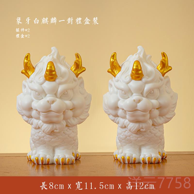 高档招财瑞麒兽乔麟件一对中式陶瓷客厅玄关办公桌面装摆饰迁开业