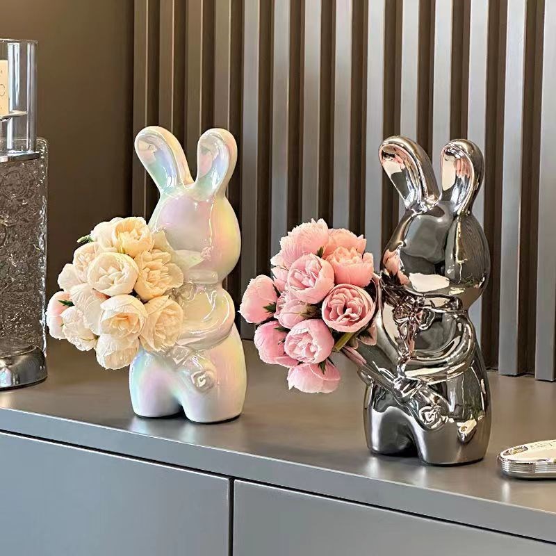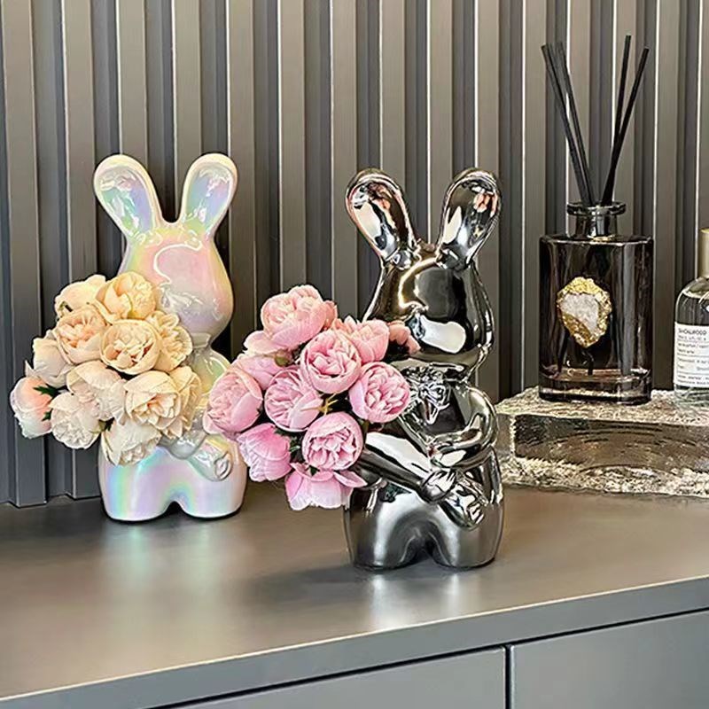 创意艺术手捧兔花瓶高级感插花瓶摆件客厅插花桌面装饰品乔迁礼物
