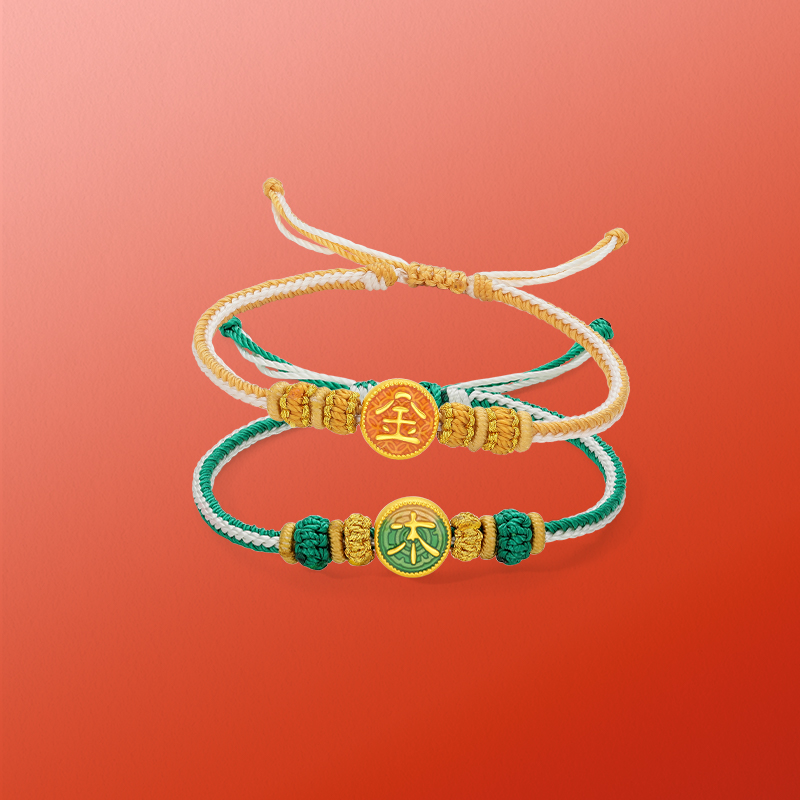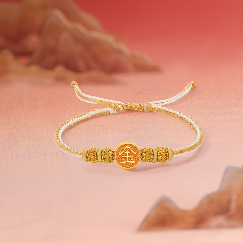 周六福黄金手绳女5d硬金定价金木水火土多宝国风五行足金手链官方