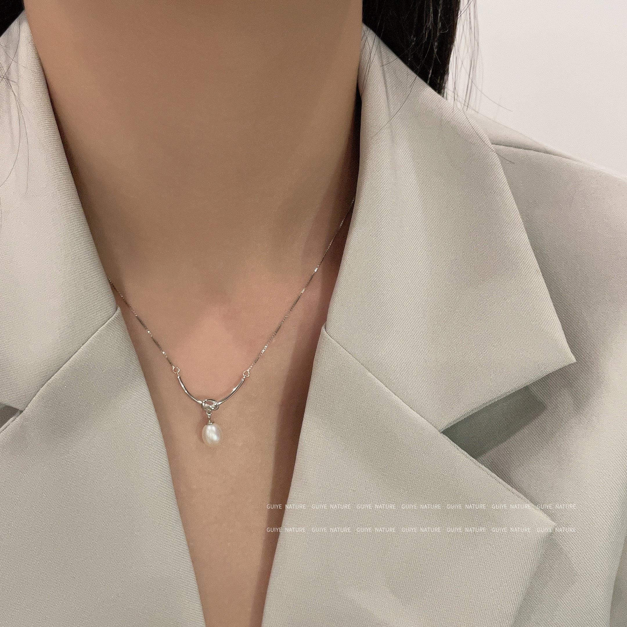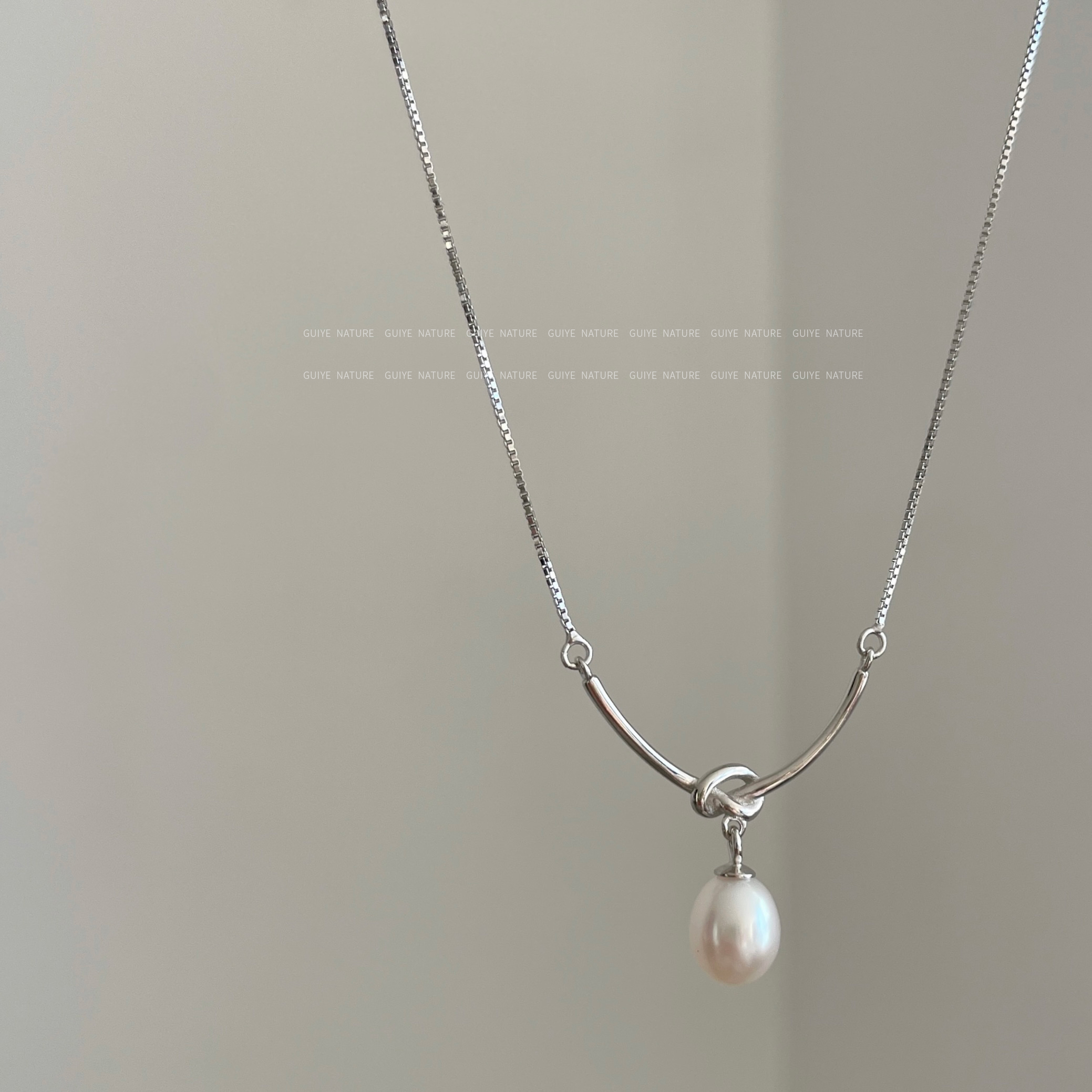 925纯银绳结珍珠项链女款夏轻奢小众设计感简约气质锁骨链高级感