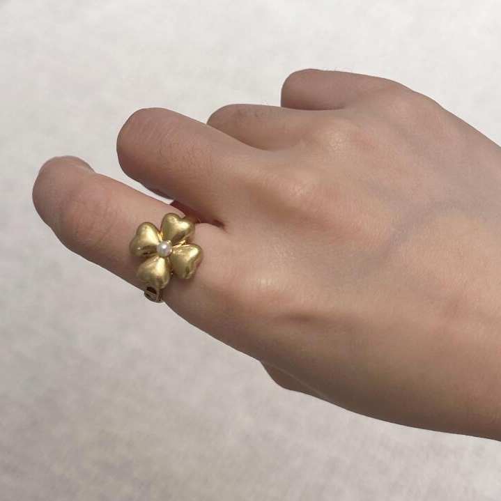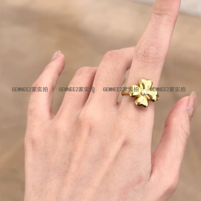 2025年新款轻奢高级感高端精致简约小众珍珠金色四叶草戒指女