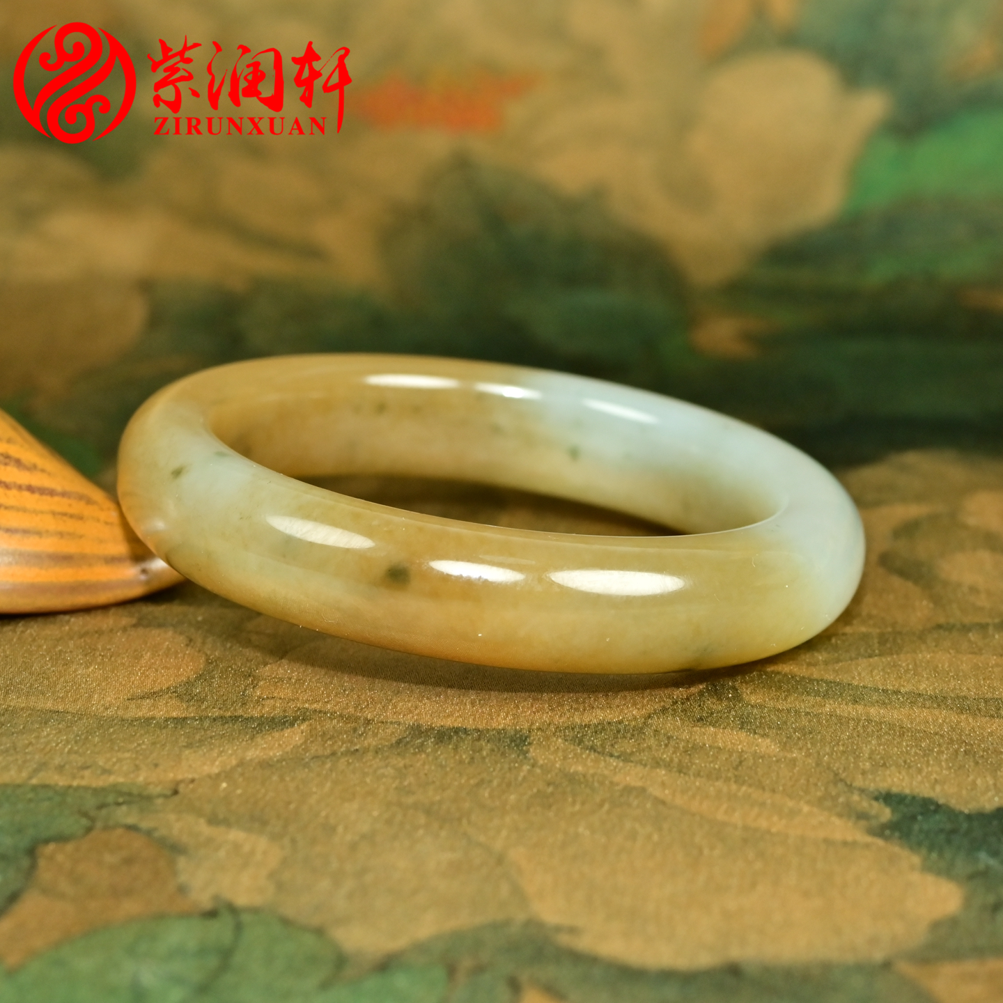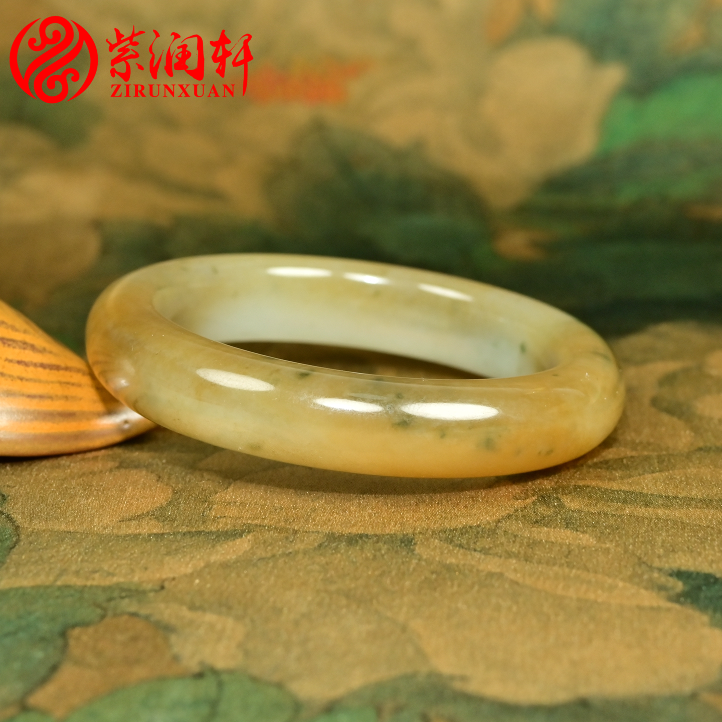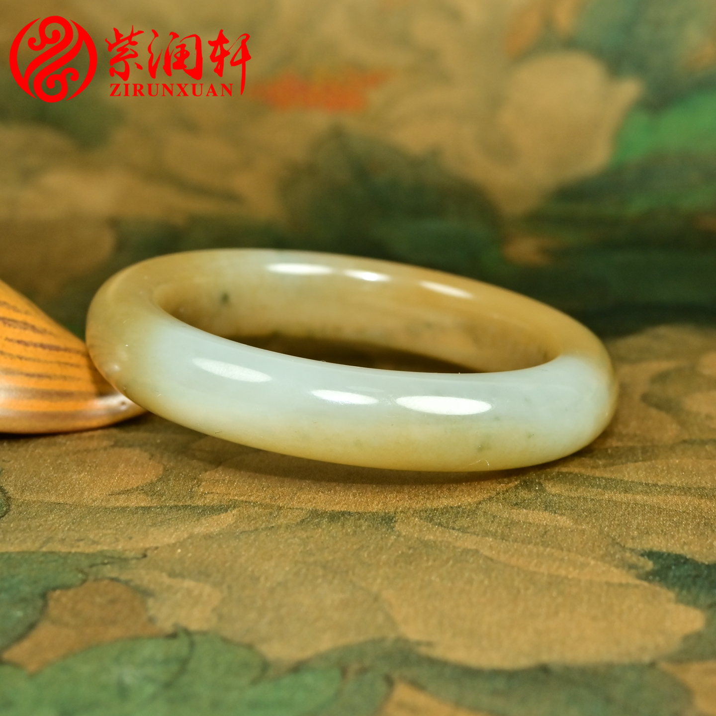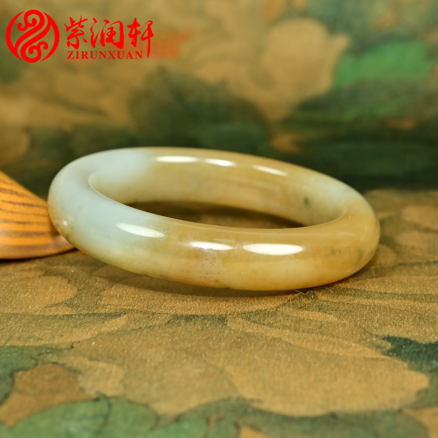 紫润轩新疆和田玉糖青白手镯飘翠三色玉镯54 5MM哑光高油收藏级