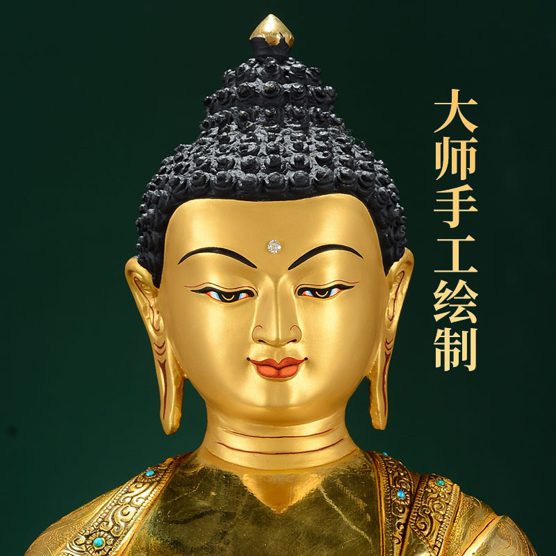 欧斯特 阿弥陀佛中式摆件 尼泊尔手工铜全鎏金双层底座客厅三宝佛