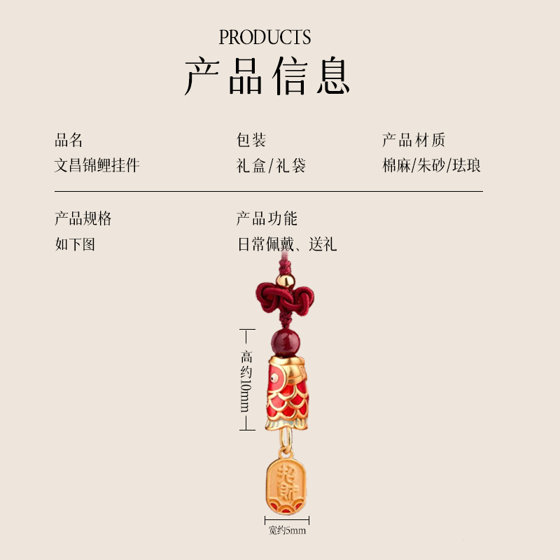 普陀山文昌结好运锦鲤上岸考研挂件钥匙扣女挂绳朱砂手机链挂饰男