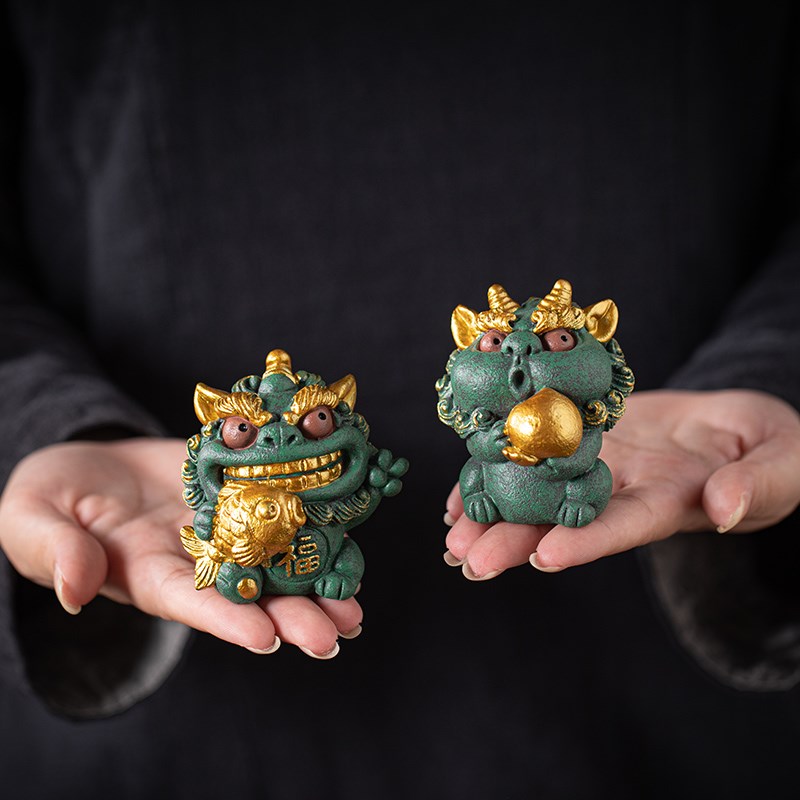 创意瑞兽小貔貅福鱼寿桃摆件可爱暴富开运风狮爷家居客厅桌面装饰