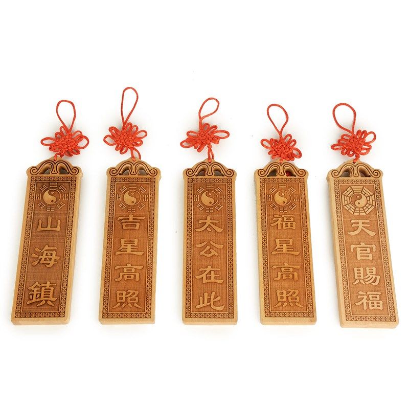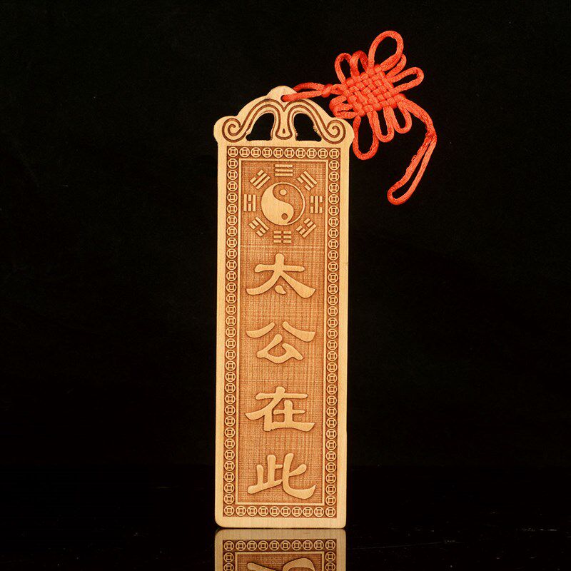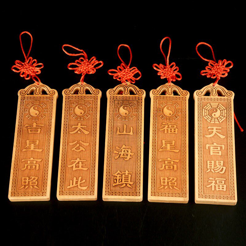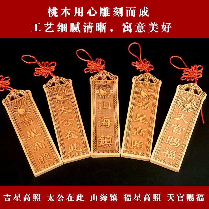 桃木天官赐福山海镇牌福吉星高照太公在此挂绳挂件大门玄关装饰品