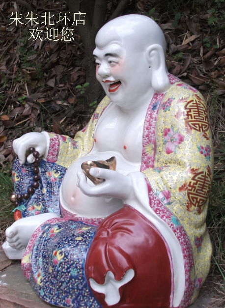景德镇粉彩陶瓷弥勒佛摆件坐笑佛工艺品开业招财家居风水摆设16寸